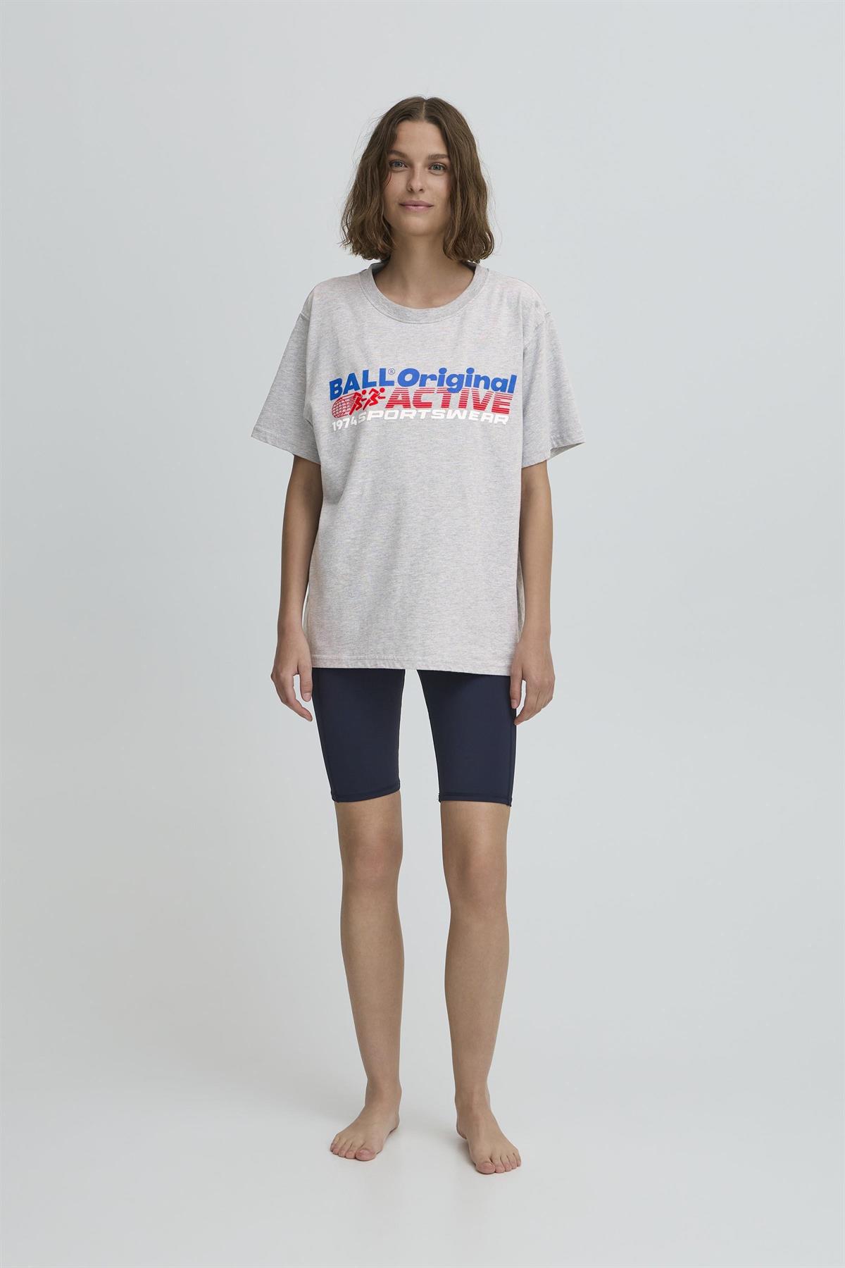 Så cool let oversize t-shirt i en flot grå farve med logo skrift fortil. Ball Energia T-shirt i farven medium grey melange er med rund hals og korte ærmer og et løst og oversize look. Kvaliteten er virkelig skøn i ny og forbedret bomuldskvalitet, som du vil elske at have i dit klædeskab. T-shirten har et sejt logoprint på brystet " Ball Original" med blå, rød og hvid skrift.  En virkelig lækker style, som du kan style til et par jeans eller de lækre sport leggings fra Ball.