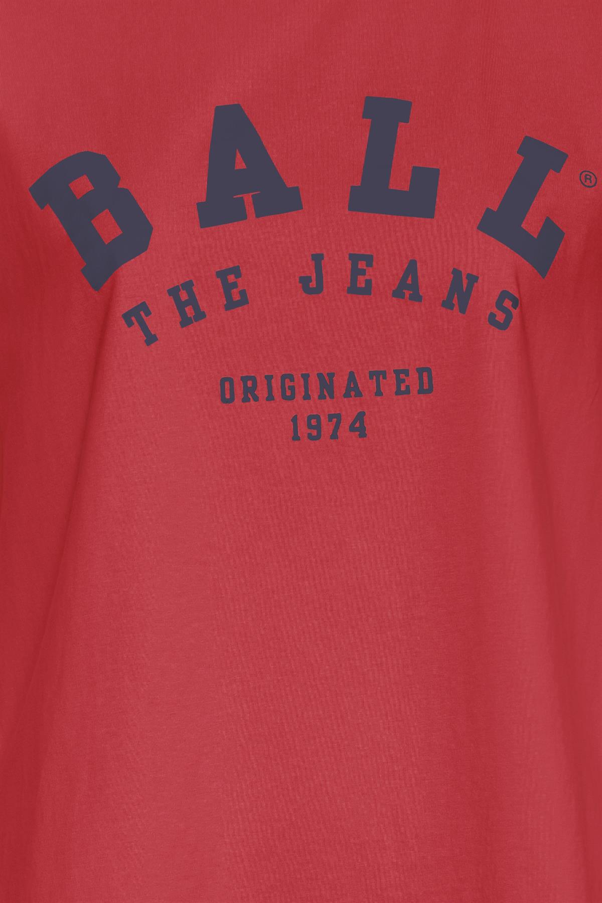 Så cool og enkel tee fra Ball i mørkerød med helt dyb navyblåt logo print fortil. Maldini T-Shirt er med rund hals og korte ærmer og har en løs pasform. T-shirten er i en lækker bomuldskvalitet. En style man kan have i garderoben altid og giver dit outfit et sporty look og i den fineste farvekombination.