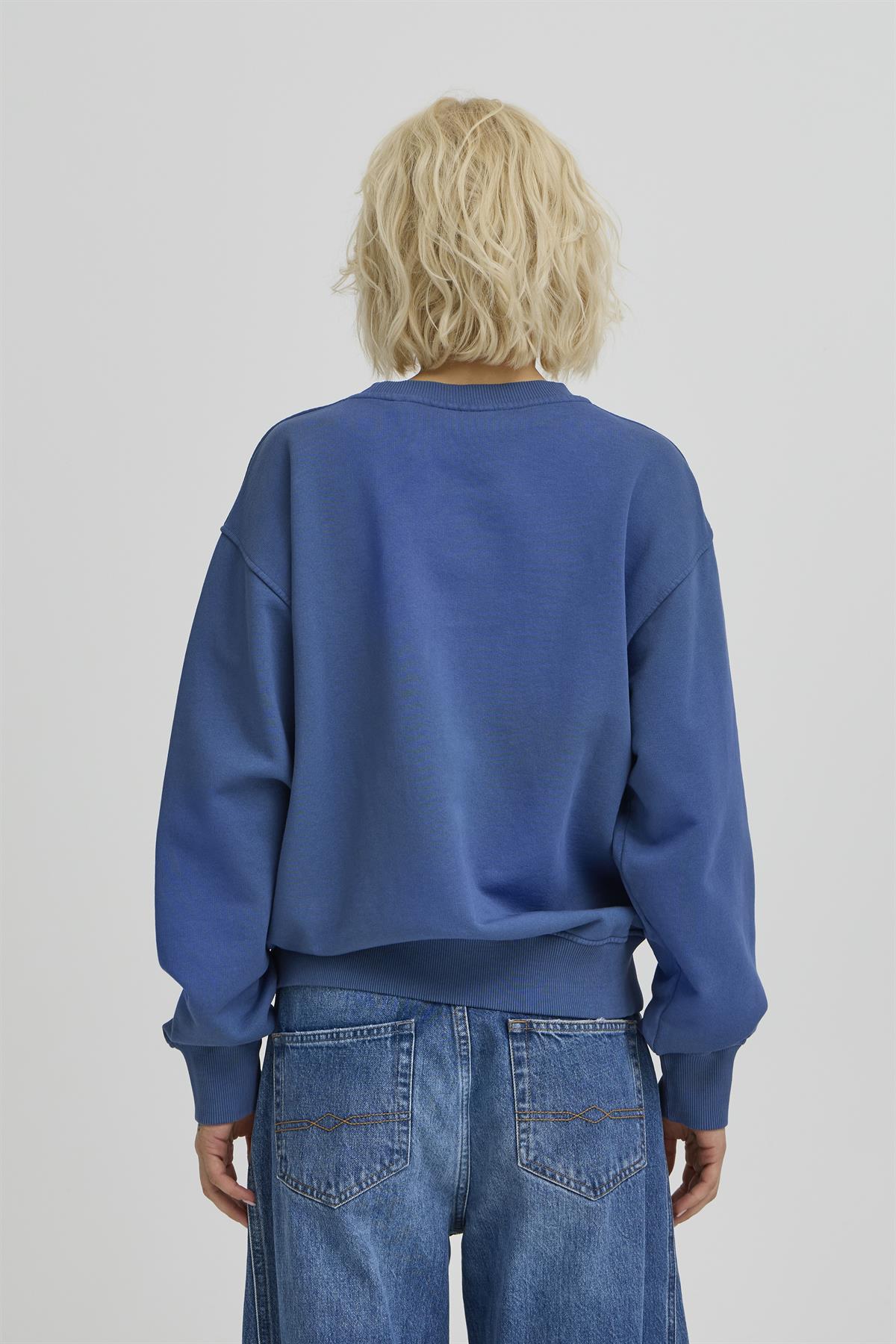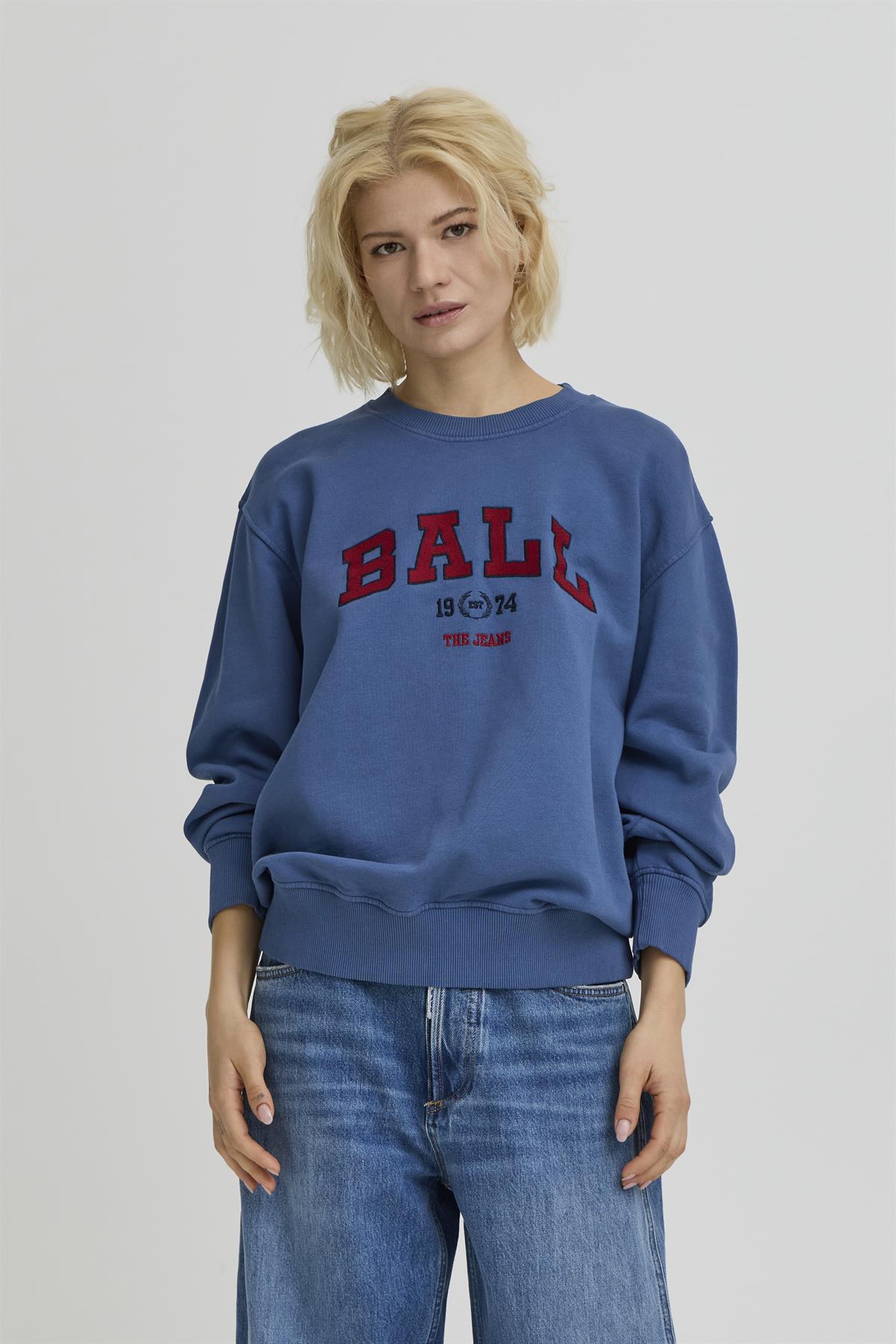 Så cool sweatshirt fra Ball i en lækker opgraderet bomuldskvalitet i støvet blå. Taylor Sweatshirt har broderet rødt og sort logo på brystet og ribkanter ved krave, håndled og talje. Trøjen har et let løs pasform og i en farve, der bare har wauw effekt. Style den til et par cool jeans.