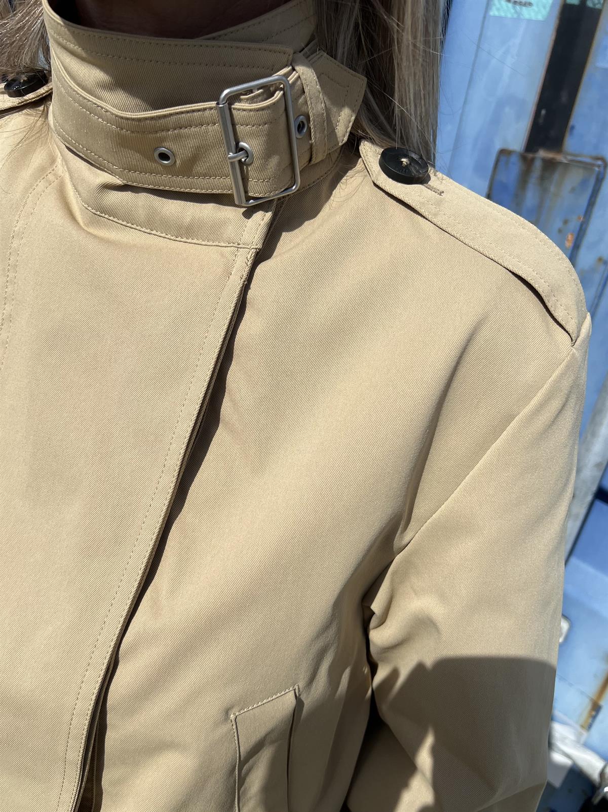 Simpelthen SÅ cool kort jakke fra JJXX i sandfarvet med virkelig fede detaljer. Caro Wilma Jacket er med høj krave med spænde, skulderstropper og stropper ved håndled, der kan reguleres. Jakken lukkes i front og har elastikkant forneden, som giver et virkelig lækkert udtryk. Virkelig en sej forårs- og sommerjakke, hvor der er kræset for detaljerne.
