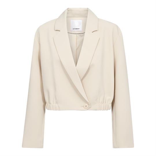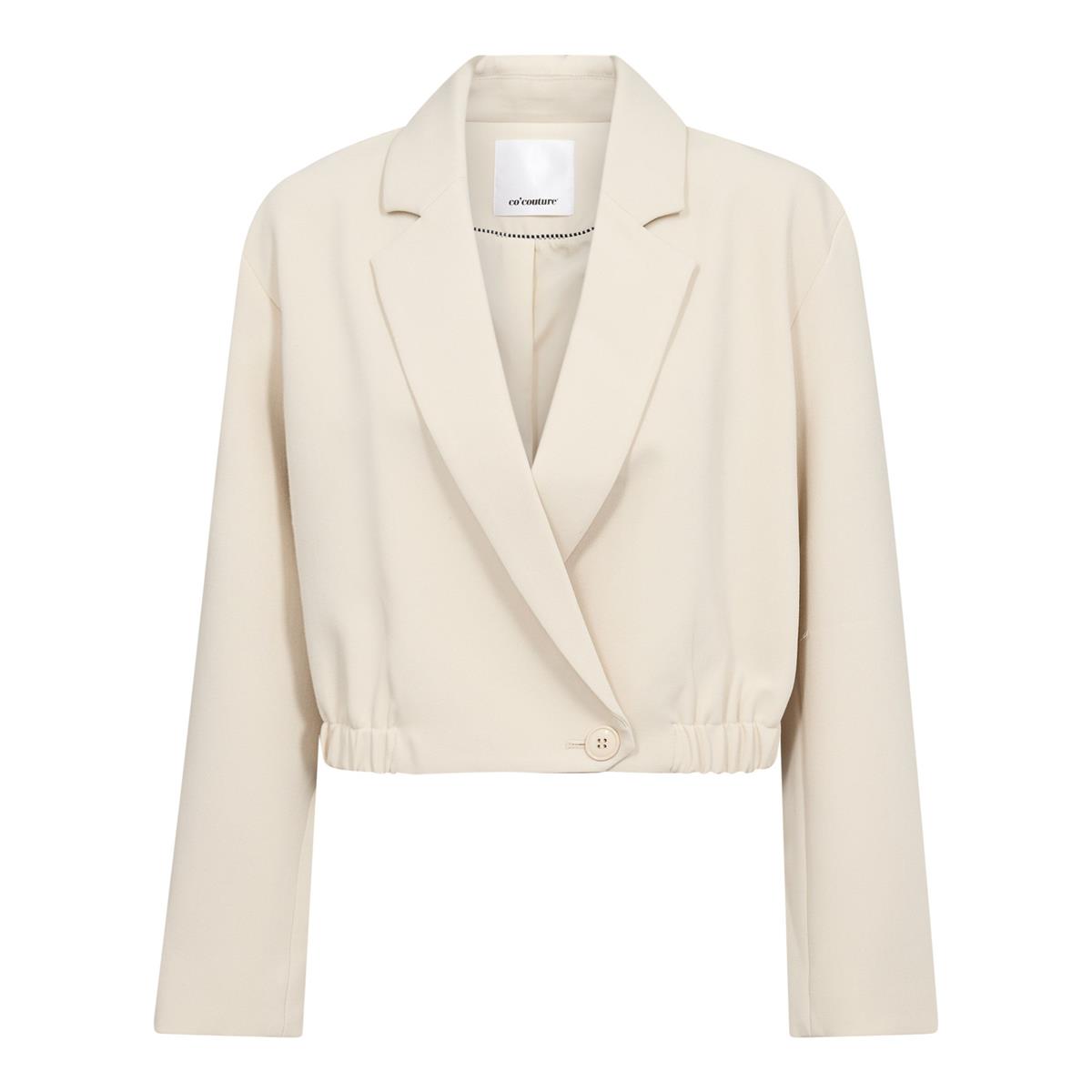 Virkelig flot, cool og elegant blazer fra Co'Couture i en lækker kvalitet i farven bone. Acile Crop Blazer har en kort pasform med elastik i kanten og lukkes med to knapper fortil, den ene knap er skjult indvendigt. Jakken har blazer detaljer med krave og indvendig foer men med et cool næsten bomberjakke udtryk. Vi er vilde med udtrykket, som er perfekt at style til højtaljet bukser eller udenover en kjole.