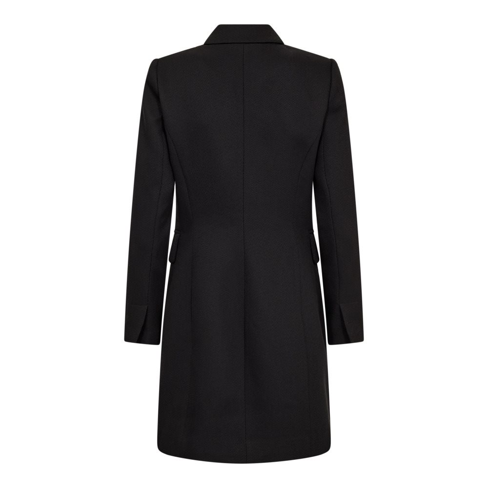 Sejeste blazerkjole fra Co' Couture i sort habitkvalitet (grov kvalitet med struktur). Almira Blazer Dress er lavet som en almindelig blazer bare længere, så den får funktion som en kjole. Kjolen har dobbeltradet knapper 4 stk. fortil og er med lommer i hver side samt en paspoleret lomme på det ene bryst. Har let skulderpuder og er syet i facon, men stadig med et løst fitting. Sidder super flot på og er bare en style der aldrig går af mode og som du vil elske at have i dit klædeskab.