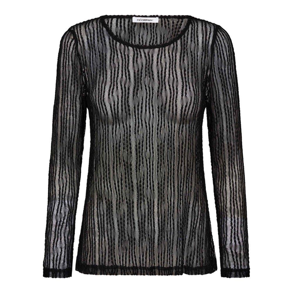 Så smuk blonde bluse fra Co' Couture i sort. Barb O-Neck Blouse er i en smuk transparent kvalitet med struktur. Blusen har rund hals, lange ærmer og en forholdsvis tætsiddende pasform. Blusen er perfekt indenunder noget, eller med en top under. En elegant og tidløs style.