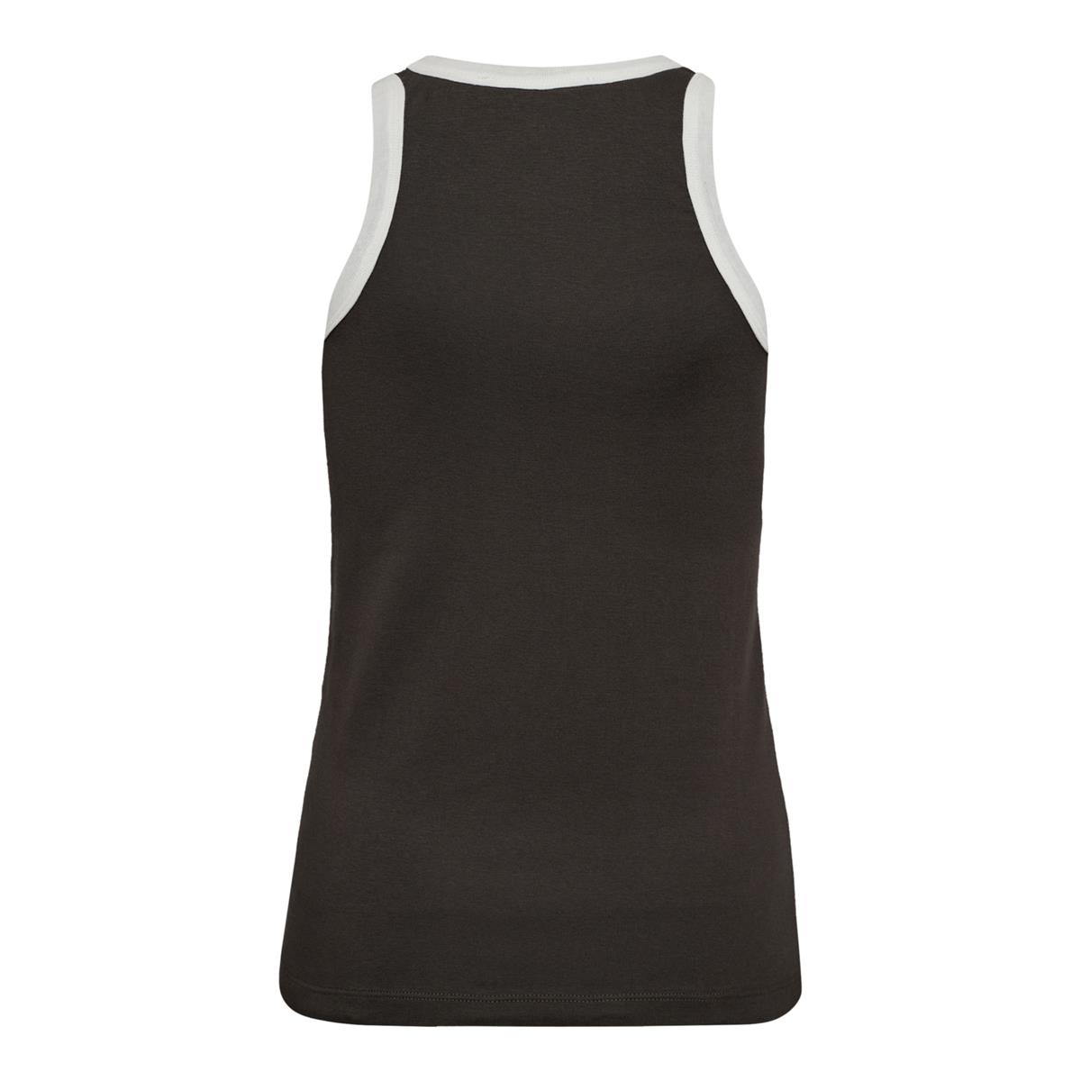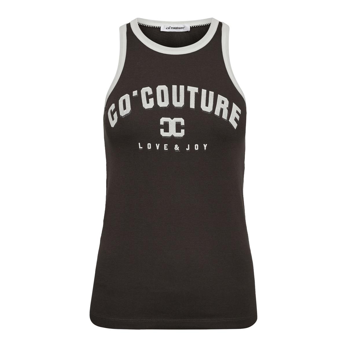 Så cool tank top i gråbrun med hvide kontraster fra Co' Couture. Edge Tank  Top er med bryderryg og er i en virkelig lækker bomuldsmiks. Toppen har logoprint i front og er med en tætsiddende pasform. Brug den som den er eller under en blazer.