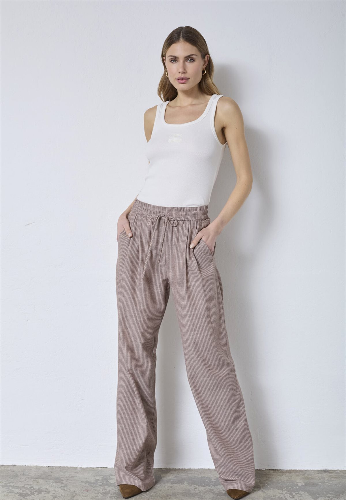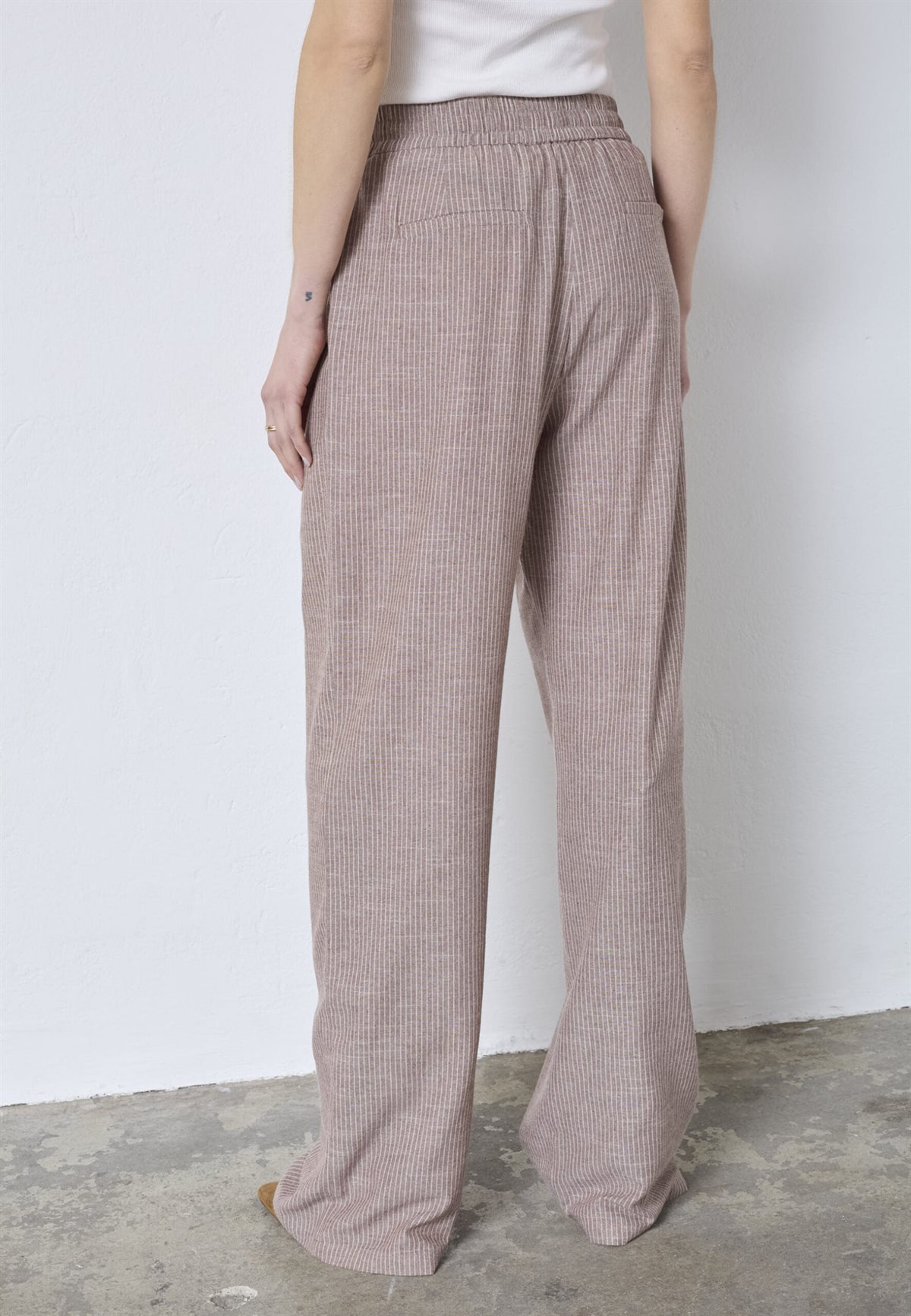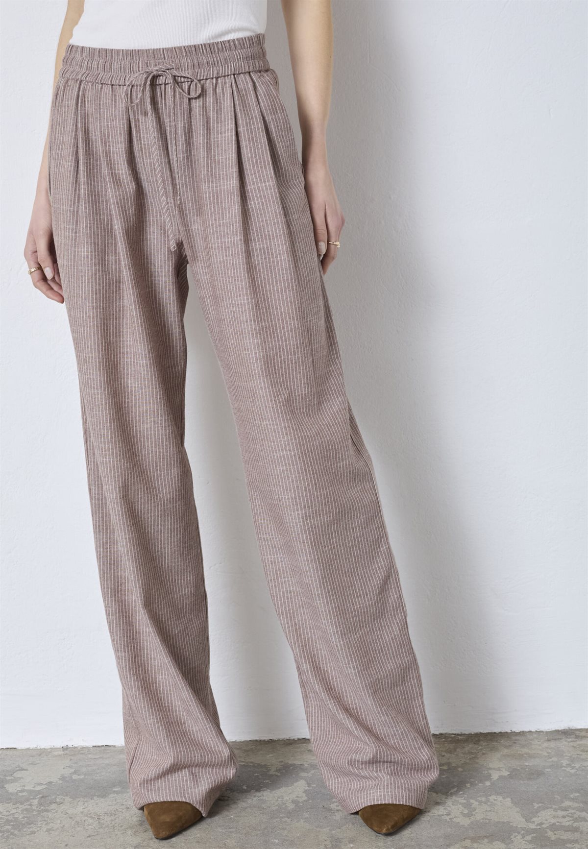 De fineste bukser i en flot lysbrun farve med offwhite strib fra Co'Couture. Jiho Stripe Pant er ned elastik i taljen og bindebånd. Har lommer i siden, paspoleret lommer bagpå og en løs og let pasform. Virkelig behagelige i en lækker bomuldmix. Der findes matchende Jiho shirt til i samme flotte metervare, hvis du ønsker et komplet sæt.