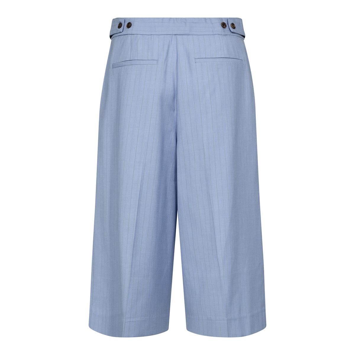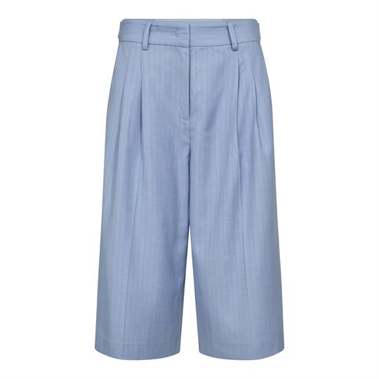 Virkelig cool lange shorts fra Co' Couture i lyseblå med nålestriber. Kiana Pin Pleat Bermuda lukkes med lynlås og hægte, har fine lægdetaljer i front, lommer i siderne og paspolerede baglommer. Shortsene har desuden  stropdetalje i taljen i siderne, som kan justeres med knap. En virkelig fin og klassisk style, der med fordel kan styles med matchende vest for et virkelig lækkert sæt.