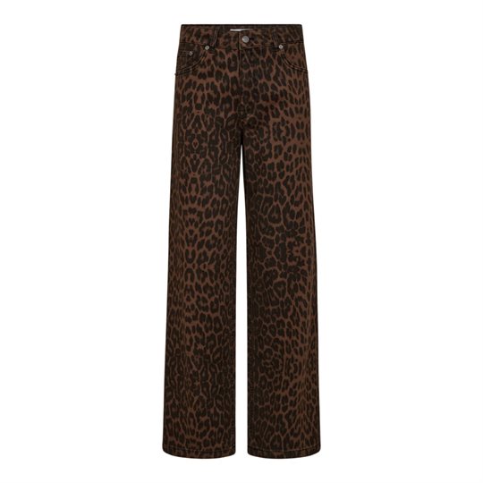 Seje leo jeans fra Co'Couture med lækker stræk i og enorm god pasform. Leo New Wide Pant i dark brown er en straight leg jeans med mid waist talje. De er lavet i en virkelig lækker blød denimkvalitet med stræk i et flot leoprint i brune nuancer. Bukserne har lommer fortil og baglommer samt bæltestropper og lukkes helt klassik med lynlås og knap. Et par musthave jeans som kan styles til alverdens overdele, og vi alle ved at leo aldrig går af mode.