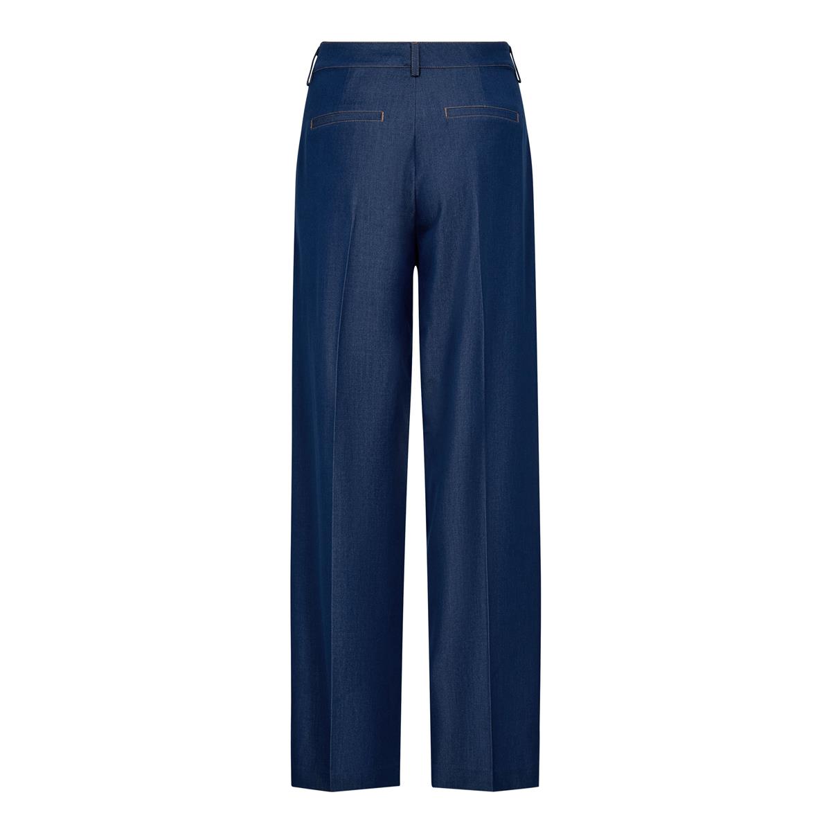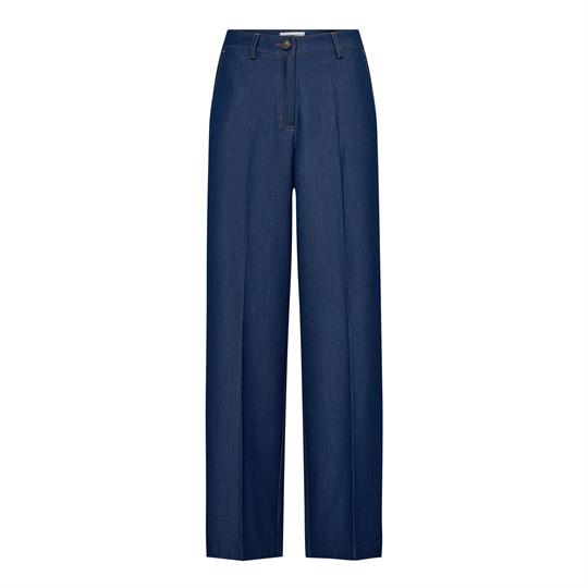 Så cool denimbukser fra Co' Couture i helt mørkeblå i lækkert blød tyndere materiale med stræk (ala chambray kvalitet). Terry Pant lukkes med lynlås og knap og har bæltestropper i taljen. Bukserne har desuden kontrast syninger, lommer i siderne og paspolerede baglommer. En virkelig lækker style med klassiske lægdetaljer, der med fordel kan styles med den matchende Terry vest.