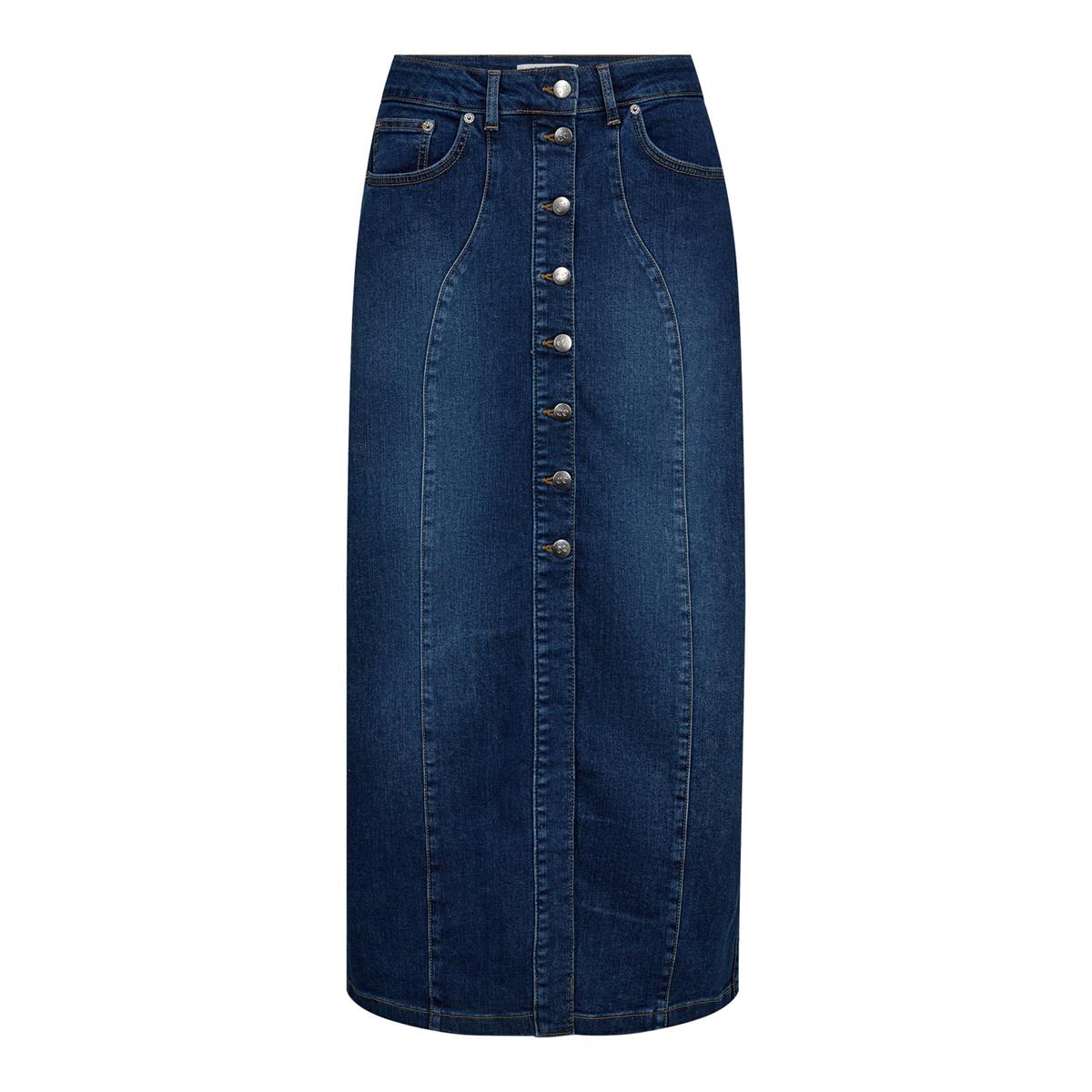 Lækker denimnederdel fra Co' Couture i blå denim i en lækker kvalitet med let stræk. Tyler Denim Skirt lukkes med knapper i front i det øverste stykke og har slids forneden. Nederdelen har desuden lommer i front, baglommer og bæltestropper. Der er fine bølgede syningsdetaljer, som giver en virkelig fin detalje. En virkelig lækker nederdel, der er god i alle sæsonner.