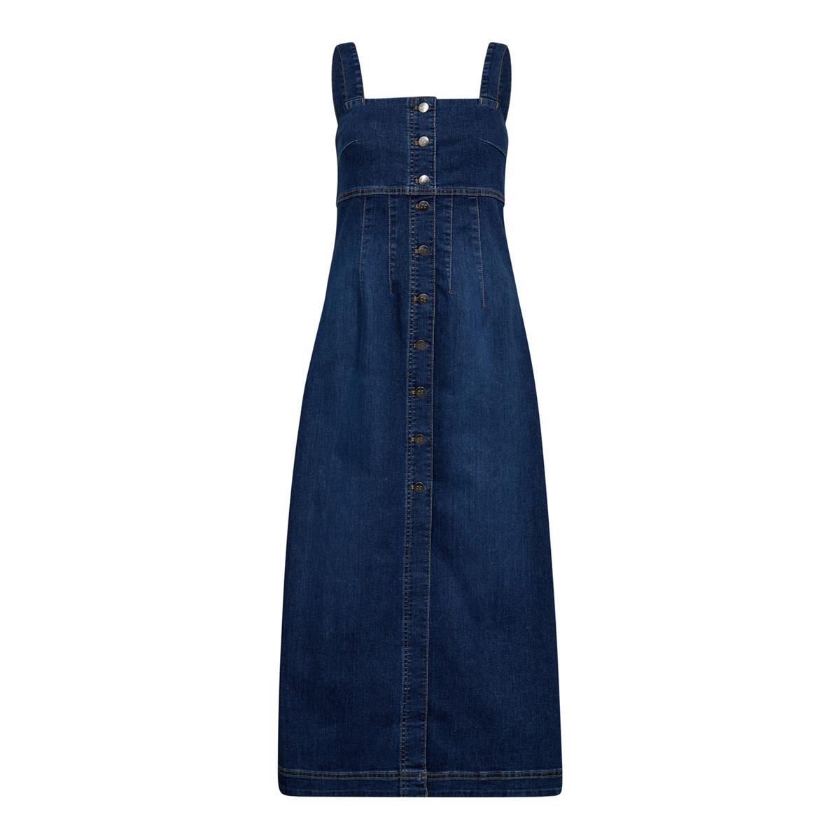 Så fin denimkjole fra Co' Couture i blå denim i en lækker kvalitet med let stræk. Tyler Denim Long Dress lukkes med knapper i front i det øverste stykke og har slids forneden. Kjolen har stropper og skæring under brystet og en forholdsvis tætsiddende pasform. Der er syningsdetaljer, som giver en virkelig fin detalje. En virkelig lækker kjole, der er god i alle sæsonner. Style den som den. er, eller med en bluse eller skjorte indenunder.