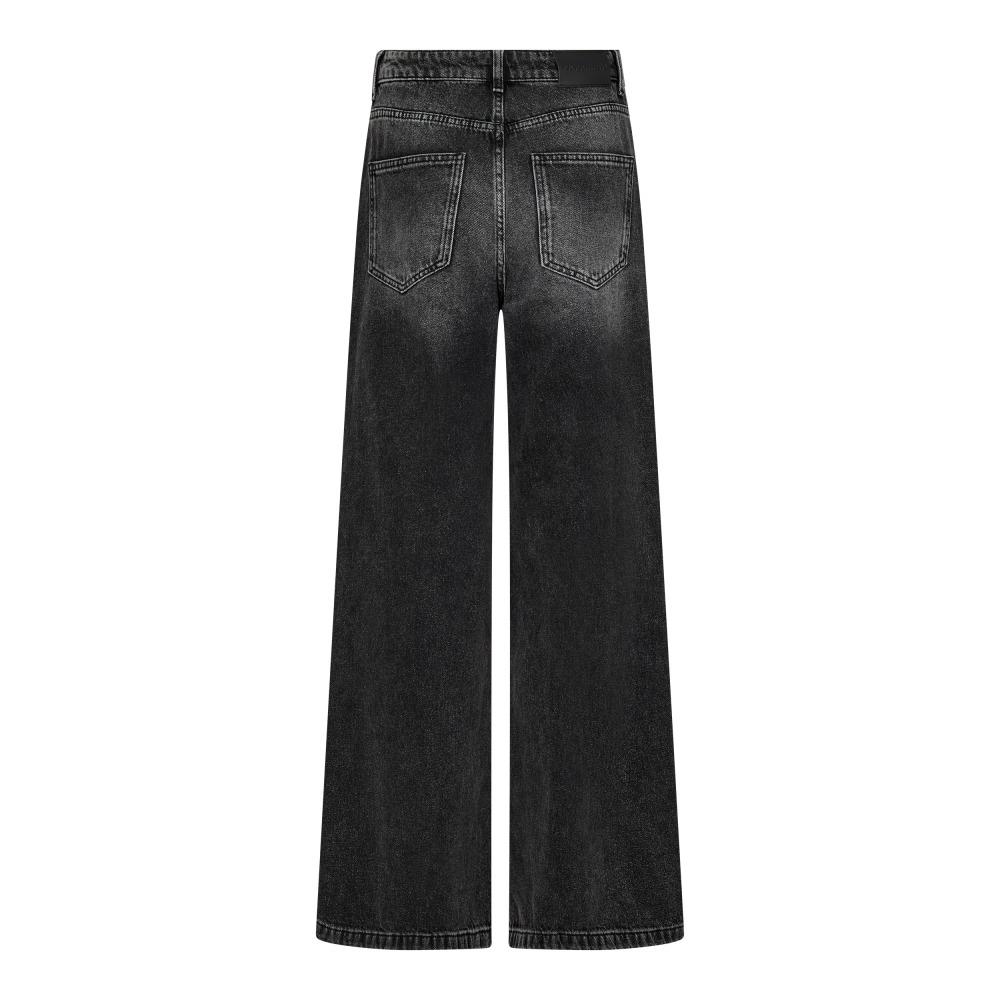 Så cool jeans fra Co' Couture i en sort lækker slidt vask. Vicky Stud Wide Jeans er med høj talje med bæltestropper og lukkes foran med lynlås og knap. Jeansene har seje nitte detaljer rund ved forlommen og på de to forreste bæltestropper. De er med brede ben, men kan også styles med et lille opsmøg forneden, som på modelbilledet. Et musthave til garderoben, som giver et hav af stylingsmuligheder. Toppen og meshblusen vist på modelbillet finder du under vores Co' Couture udvalg.