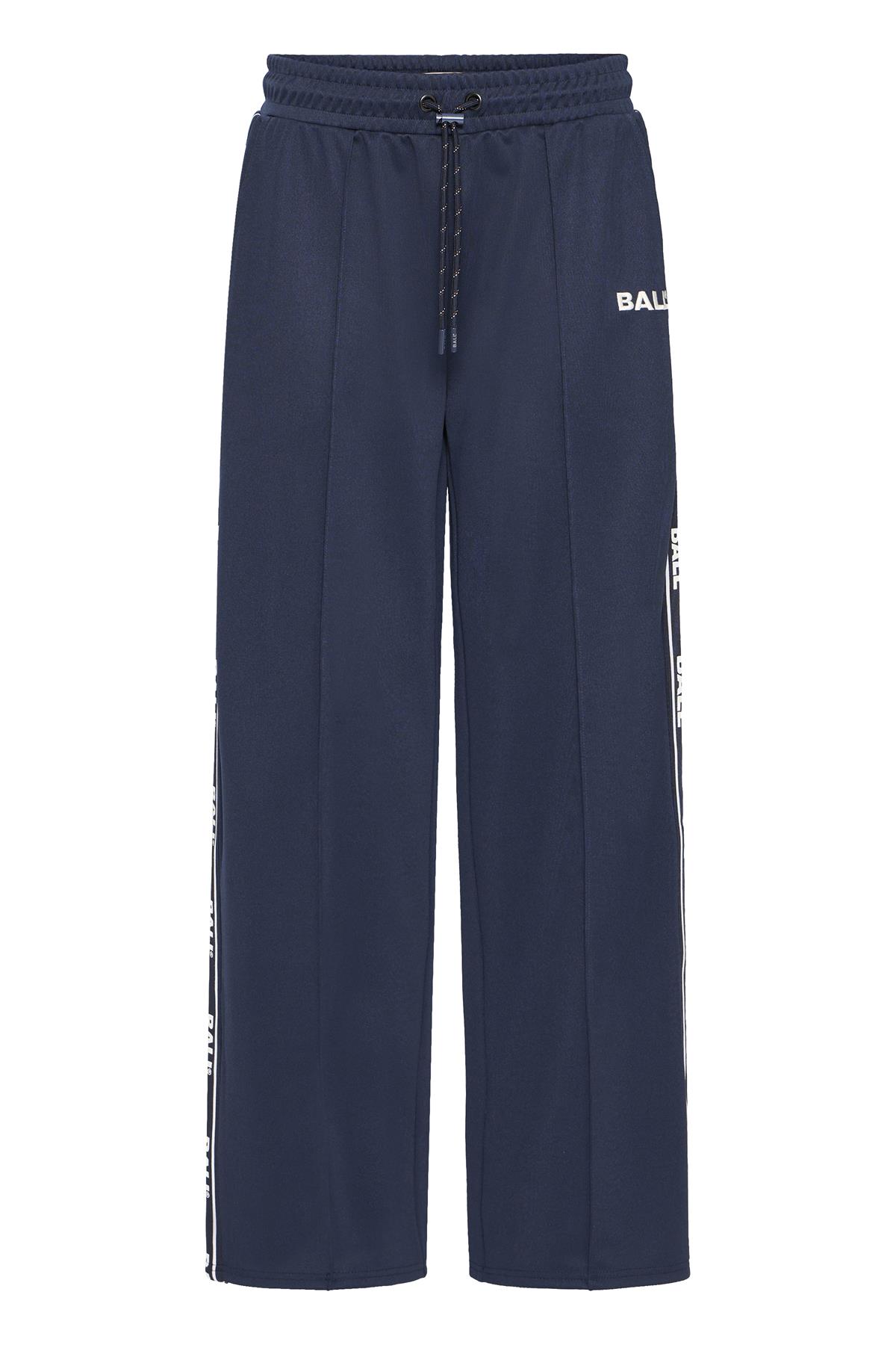 Så cool trackpants fra Ball i navyblå med hvide detaljer. Nicolina Track Pant er med lommer i siderne, elastikkant og bindesnørrer i taljen. Bukserne er med løse ben med logo og hvide striber ned af siderne samt lille logo fortil. En virkelig trendy og sporty style, der med fordel kan styles med matchende trackjacket.