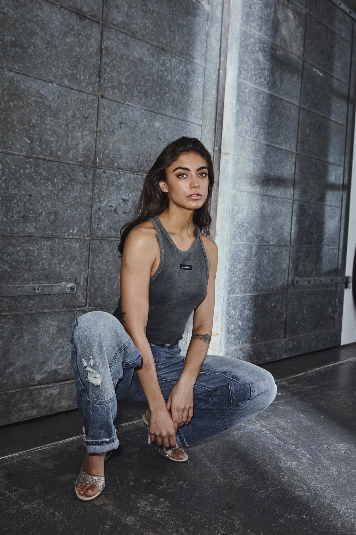 Simpelthen så cool tanktop fra Haute L' Amitié i en sort acid vask, så den får et gråt slidt llok. Acid Rib Badge Tank er i en lækker ribkvalitet med en tætsiddende pasform. Toppen har sort logoskilt i front og er den perfekte sommertop eller til at style inden under en skjorte eller blazer.