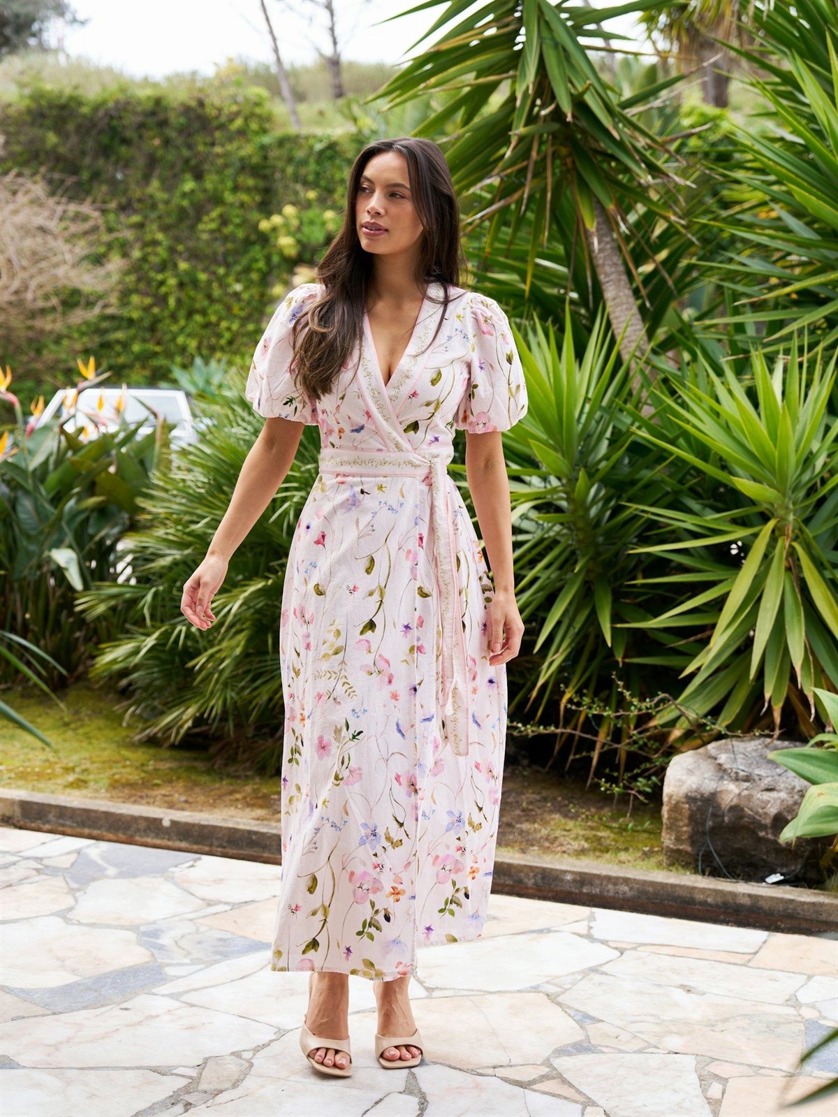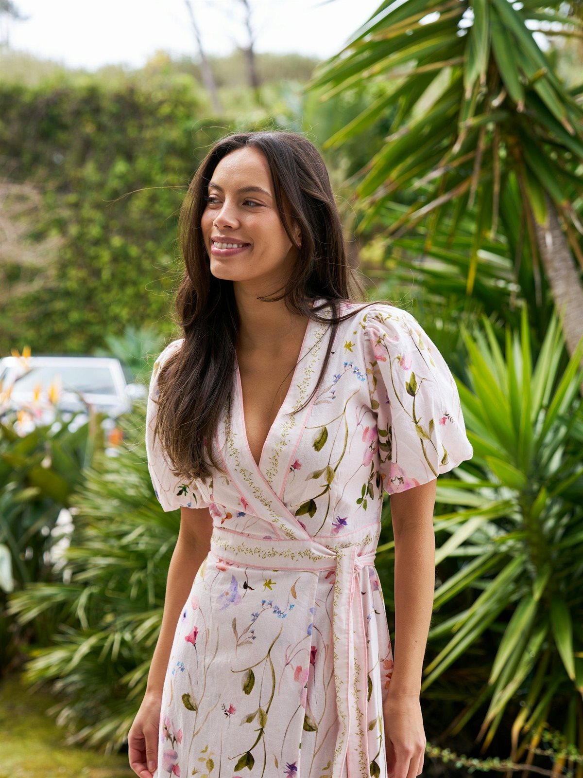 Smukkeste kjole med blomsterprint og off white bund fra Neo Noir. Clarine Flower Dress er en virkelig fin wrap-kjole med et lille puff-ærme med indvendig elastik. Kjolen er med det fineste blomster print i rosa, blå og grønne nuancer i en lækker bomuld / hør mix. Er lavet med en flot kant ved den dybe udskæring og rundt i taljen. Bindes i den ene side, hvor den fremhæver taljen smukt. Virkelig en smuk sommerkjoler, som både egner sig til hverdag som til fest.