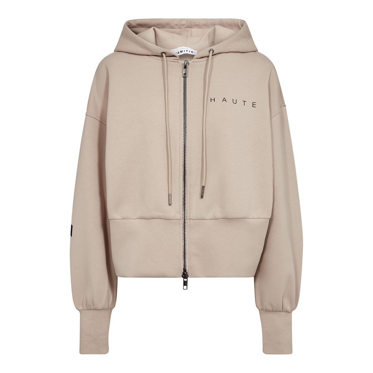 Simpelthen SÅ cool sweatshirt fra Haute L' Amitié i beige. Maxi Split Zip Hoodie er med lange ærmer, har hætte med snørrer og lukkes med dobbeltvejs lynlås. Sweatshirten har bred kant ved håndled og talje, diskret logoskrift  i front og stort logoskrift på ærmer og ryg. Er i den blødeste kvalitet og med et look, der bare har wauw-effekt. Style den til bukser fra Haute L' Amitié for det sejeste sæt.