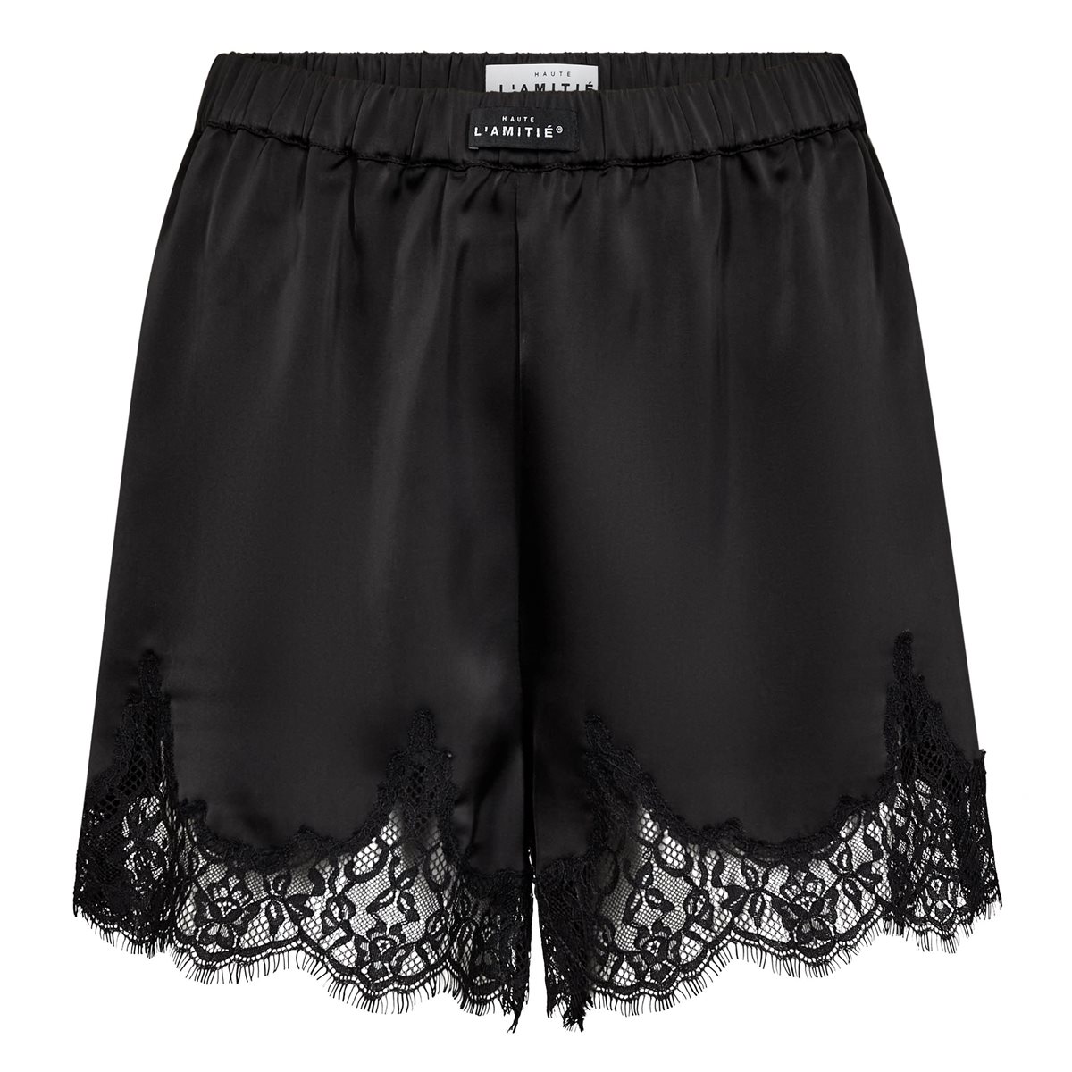 Så fine feminine shorts fra Haute L' Amitié i sort i en fin satinkvalitet. Vivian Lingerie Shorts er med elastikkant i taljen med logoskilt i front. Shortsene er med den smukkeste blondekant forneden, som giver et virkelig fint look. En helt vild skøn style til både hverdag og fest. Stle dem med en lækker overdel fra samme mærke.