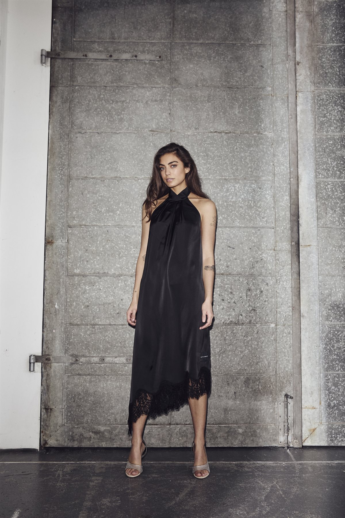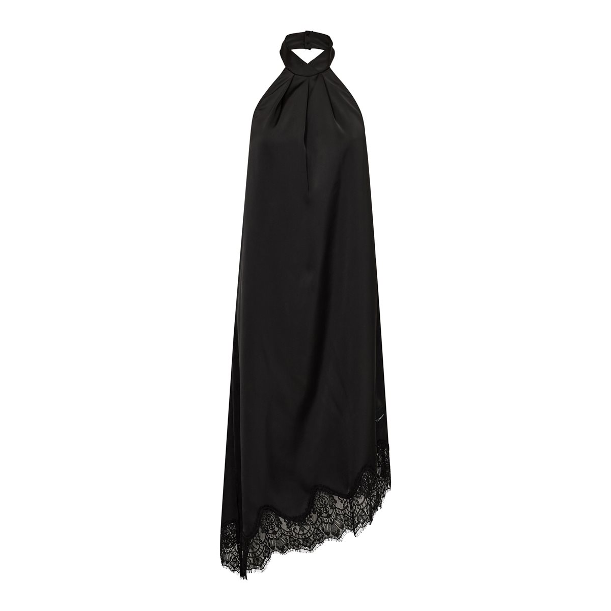 Simpelthen den smukkeste kjole fra Haute L' Amitié i en sort polyestersatin kvalitet. Naomi Asym Halter Dress er med halterneck, som giver det fineste feminine look med et syneligt skulderparti. Kjolen er med et asymmetrisk snit forneden med en smuk blondeafslutning. Virkelig en smuk og elegant kjole, der er oplagt til en festlig begivenhed.