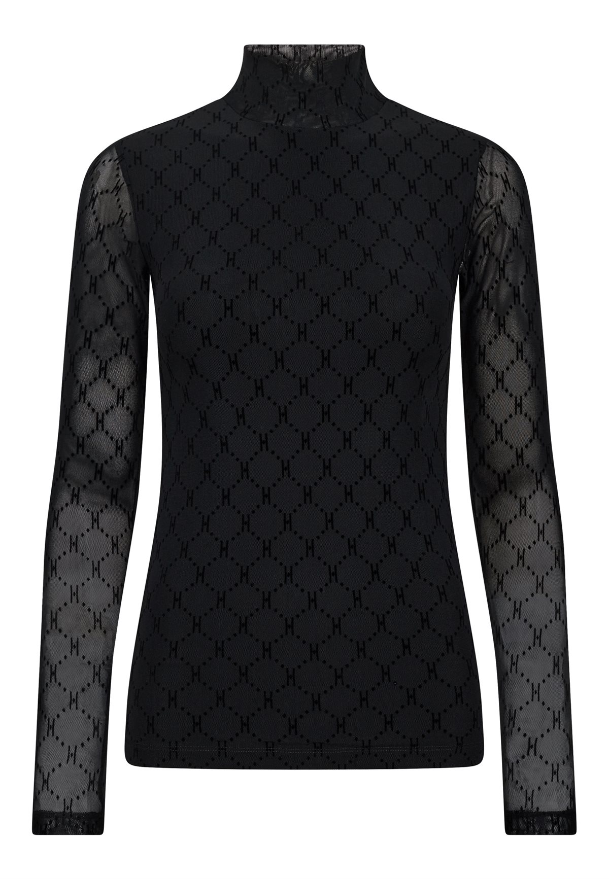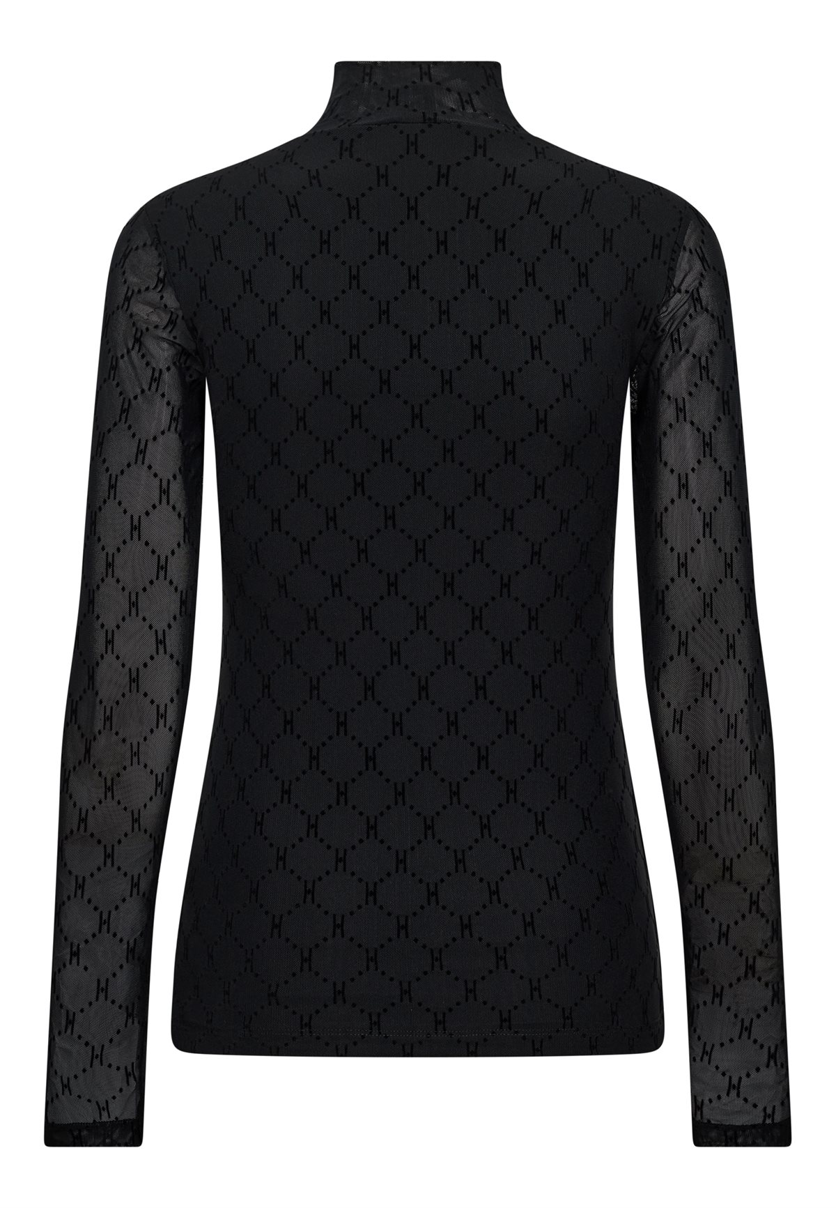 Den fineste meshbluse fra Hype The Detail i sort med lækkert h-logo broderet print. Mesh High Neck har høj hals, lange ærmer og er i et lækkert elastisk materiale. Blusen er transparent ved ærmer, men har foring i selve kroppen, hvor den ikke er gennemsigtig- En virkelig fin og feminin style, der kan give det sidste pift til dit outfit.