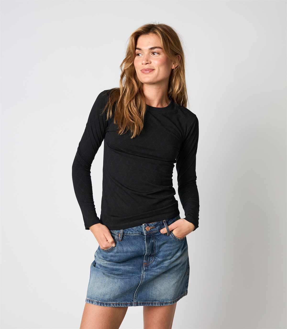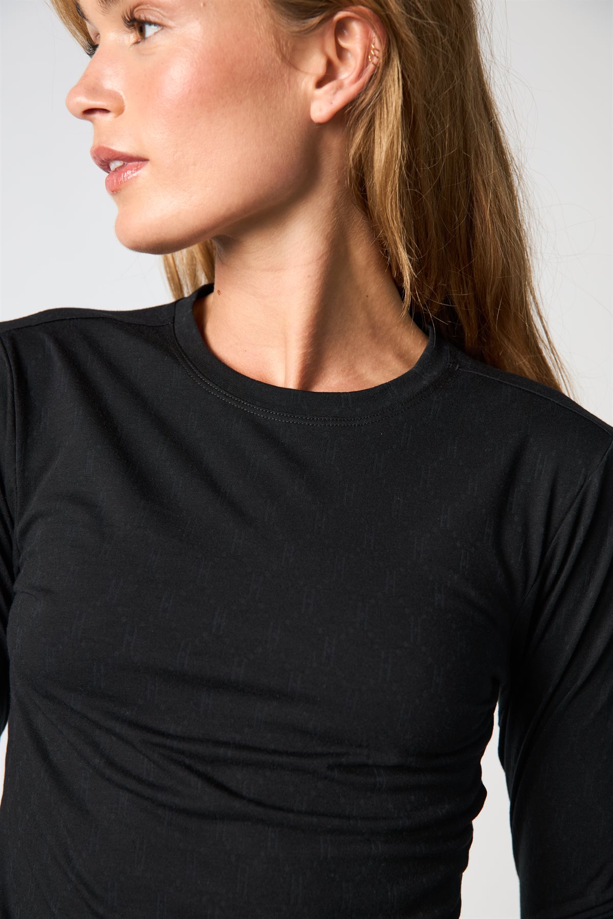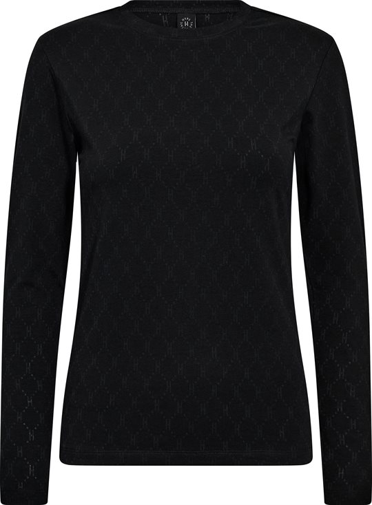 Vi har glædet os til at kunne tilbyde denne virkelig fine basis bluse / langærmet t-shirt fra Hype The Detail. Her i sort og fås også i brun og hvid, hvis det bliver en keeper i dit klædskab. Tee L/S H-Logo er lavet i en lækker bomuldkvalitet 65% med et mix af polyester og 5% elastane, som giver t-shirten en blød kvalitet, men som samtidig har godt med stræk i sig, som er med til at holde formen. Det er en tyndere kvalitet med små see-through H-logoer, og er den perfekte bluse at bruge under dine overdele eller står også flot for sig selv til f.eks. et par jeans. Vi vil kalde denne et musthave i dit skab!