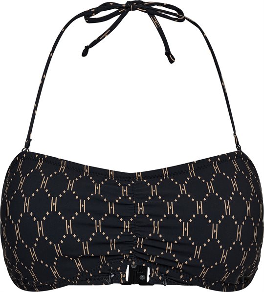 Så fin triangle bandeau bikinitop fra Hype The Detail i sort med sandfarvet logoprint. Bikini Bandeau Top lukkes med hægte i  ryg og og har aftageligt halterneck bindestrop .Kan med fordel styles med matchende bikinitrusser for det fineste bikinilook.