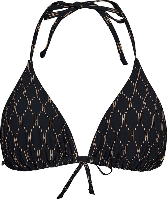 Så fin triangle bikinitop fra Hype The Detail i sort med sandfarvet logoprint. Triangle Bikini Top bindes i ryg og nakke og kan med fordel styles med matchende bikinitrusser for det fineste bikinilook.