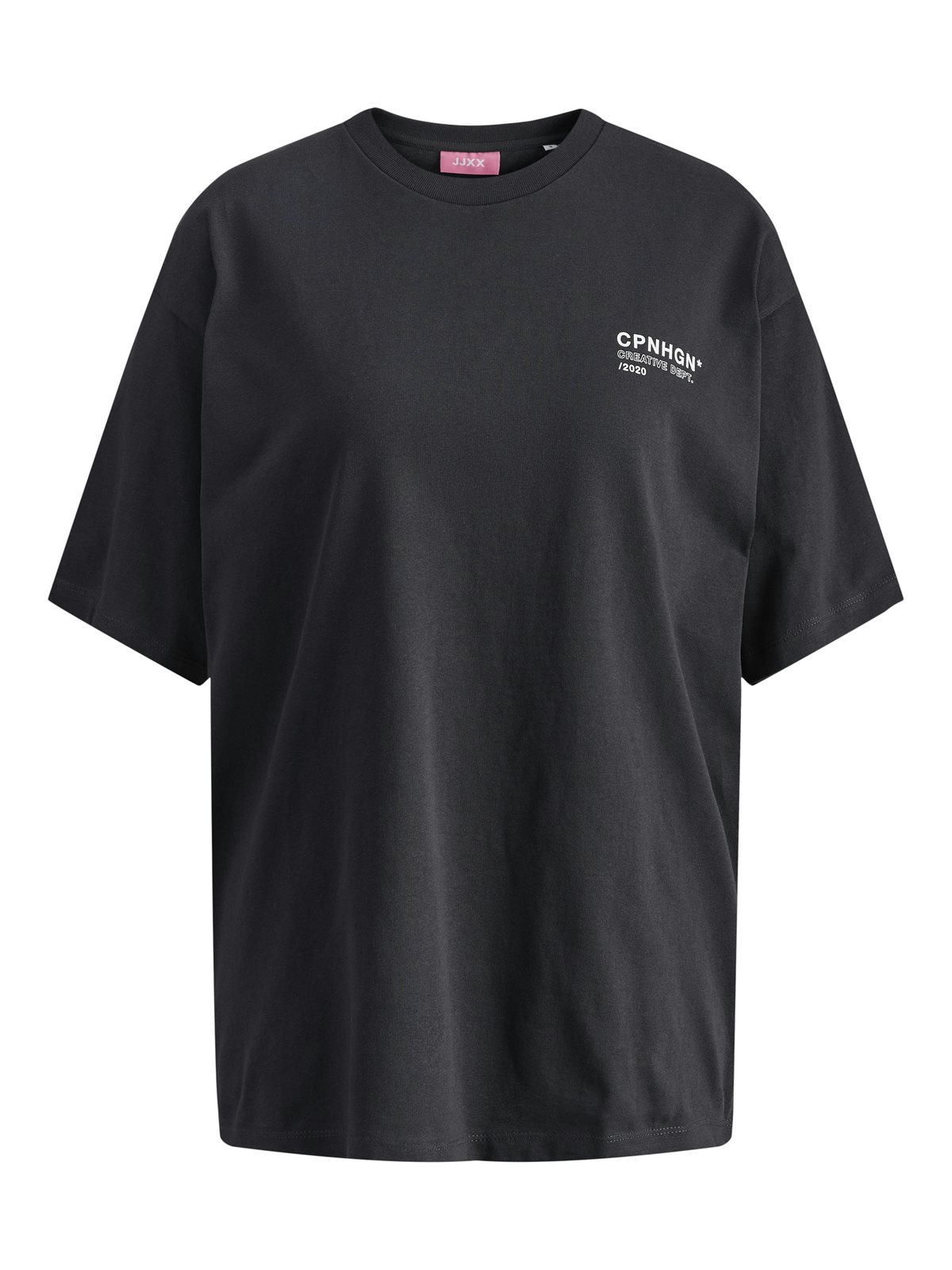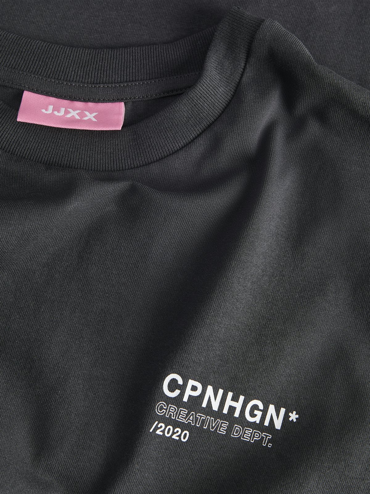 Så cool oversize t-shirt fra JJXX i sort med et let forvasket look. Millow Loose SS Tee er med rund hals og korte løse ærmer. T-shirten har cool hvidt skrift på ryggen og diskret fortil. En virkelig sej og trendy style, der har et hav af stylingsmuligheder.