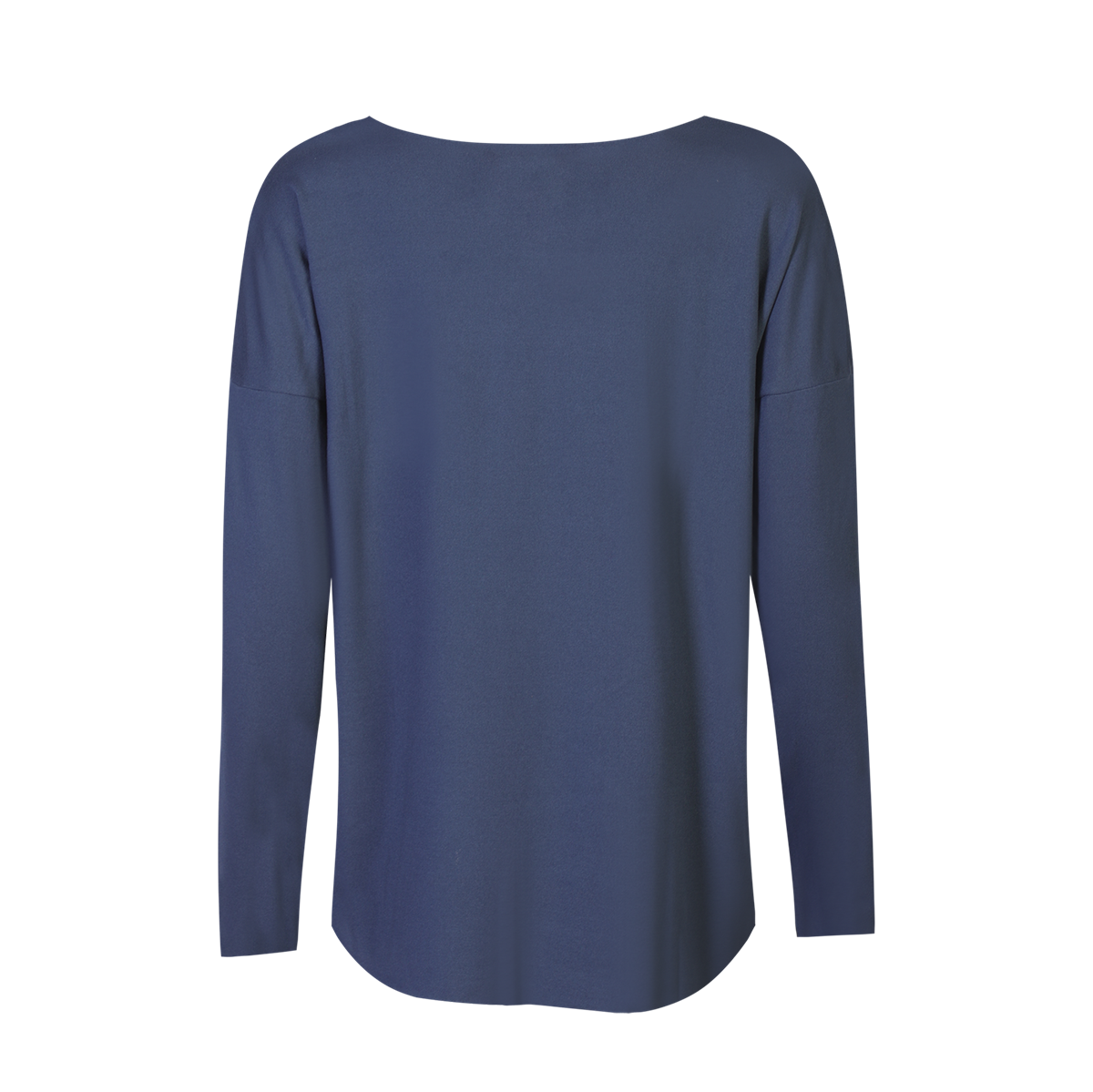 Den lækre Alma serie fra Liberté er nu kommet med fleece indvendigt, så du kan holde dig varm hele vinteren. Her er det den meget populære LS-Top i navyblå. Blusen har lange ærmer rund halsudskæring uden syning og en god længde, der lige går ned til midt bagdel. Brug den sammen med de matchende bukser i samme farve.