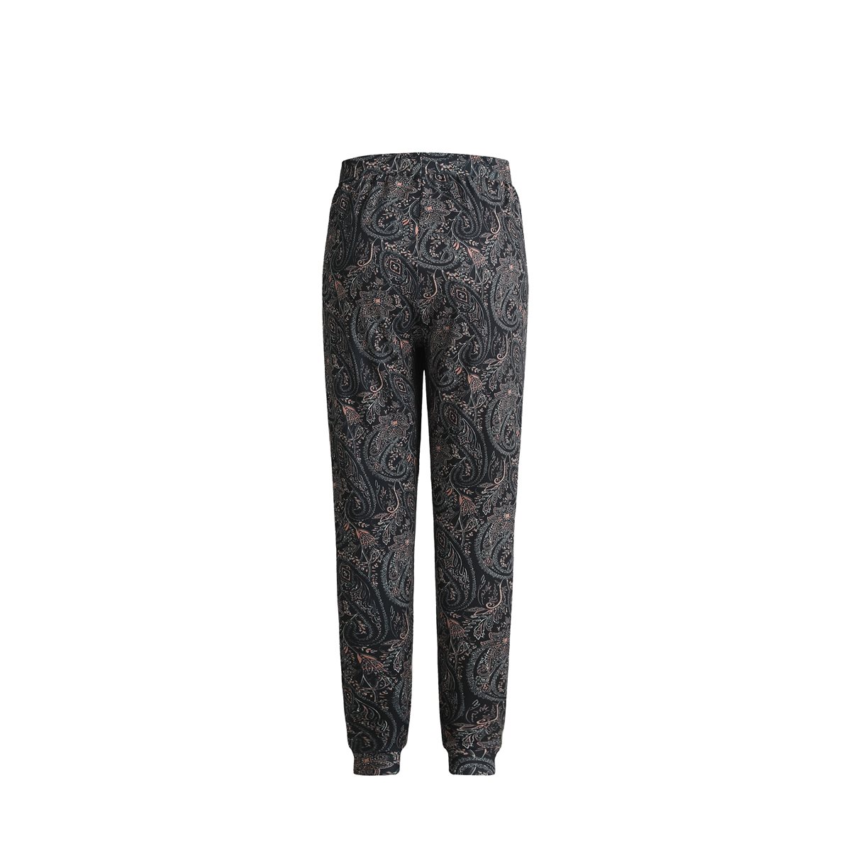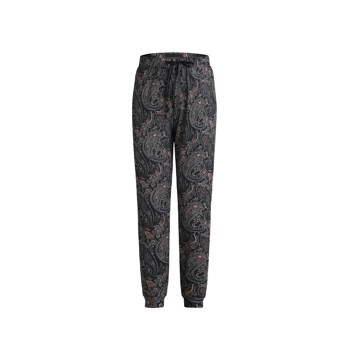 Den populære serie fra Liberté lavet i det blødeste materiale, så du næsten ikke føler, du har noget på. Her er det de meget populære Alma Pants i det fineste paisleyprint på helt mørkeblå baggrund. Bukserne er med elastik og bindebånd i taljen, har lommer i siderne og indsnævring ved ankler. Der findes matchende bluse til for et virkelig lækkert sæt.