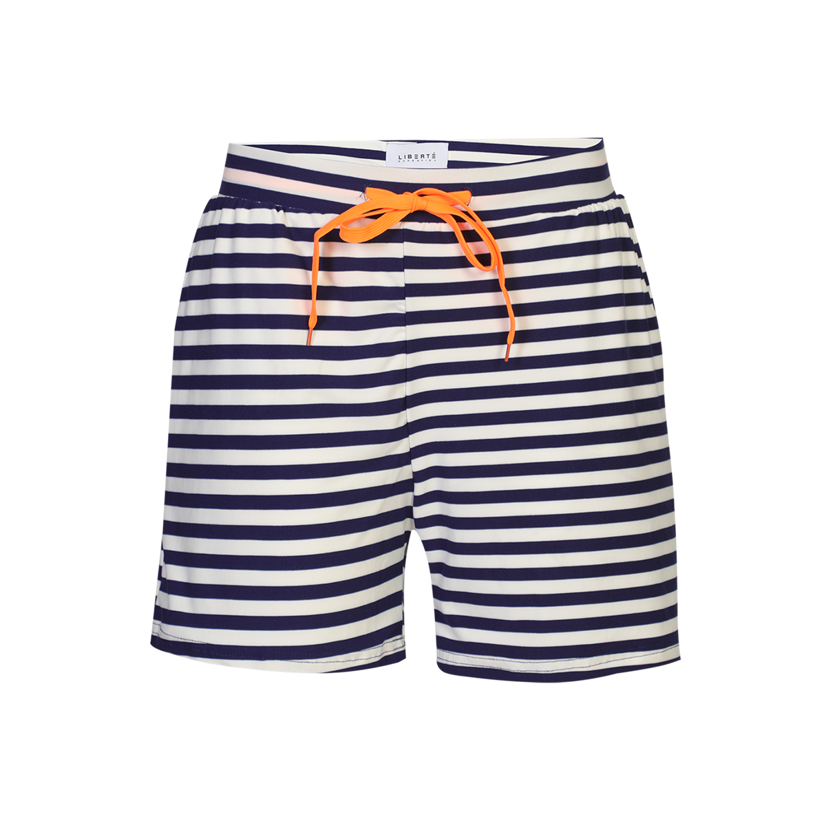 Den populære serie fra Liberté lavet i det blødeste materiale, så nu næsten ikke føler, du har noget på. Her er det de meget populære Alma Shorts i den fineste blå og cremefarvet strib. Shortsene er med elastik og neon orange bindebånd i taljen og har lommer i siderne og. Der findes matchende t-shirt til.