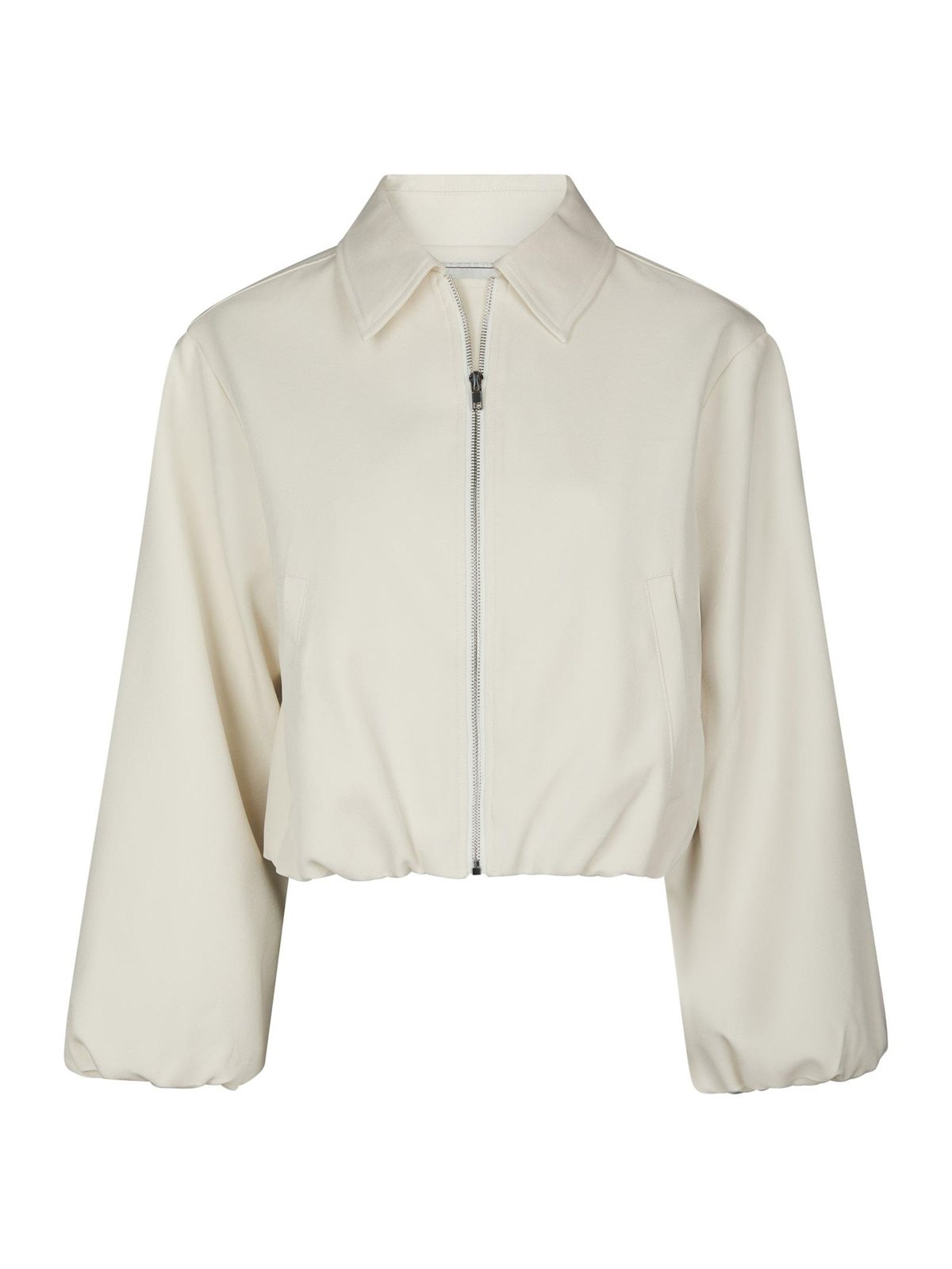 Cool bomberjakke i en flot struktureret kvalitet fra Neo Noir i råhvid. Denielle Structure Jacket har lange løse ærmer med elastik ved håndled og i bunden af jakken. Den lukkes med en lynlås foran, har krave og lommer i siderne. Perfekt alternativ til en blazer og kan også bruges i stedet for en sommerjakke.