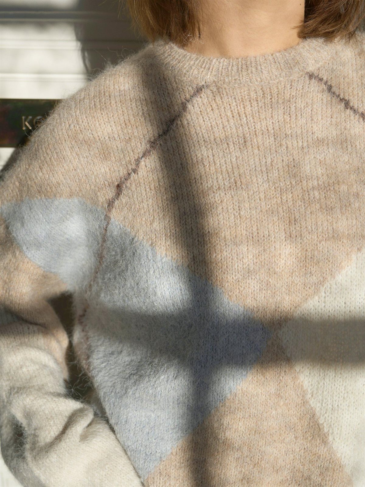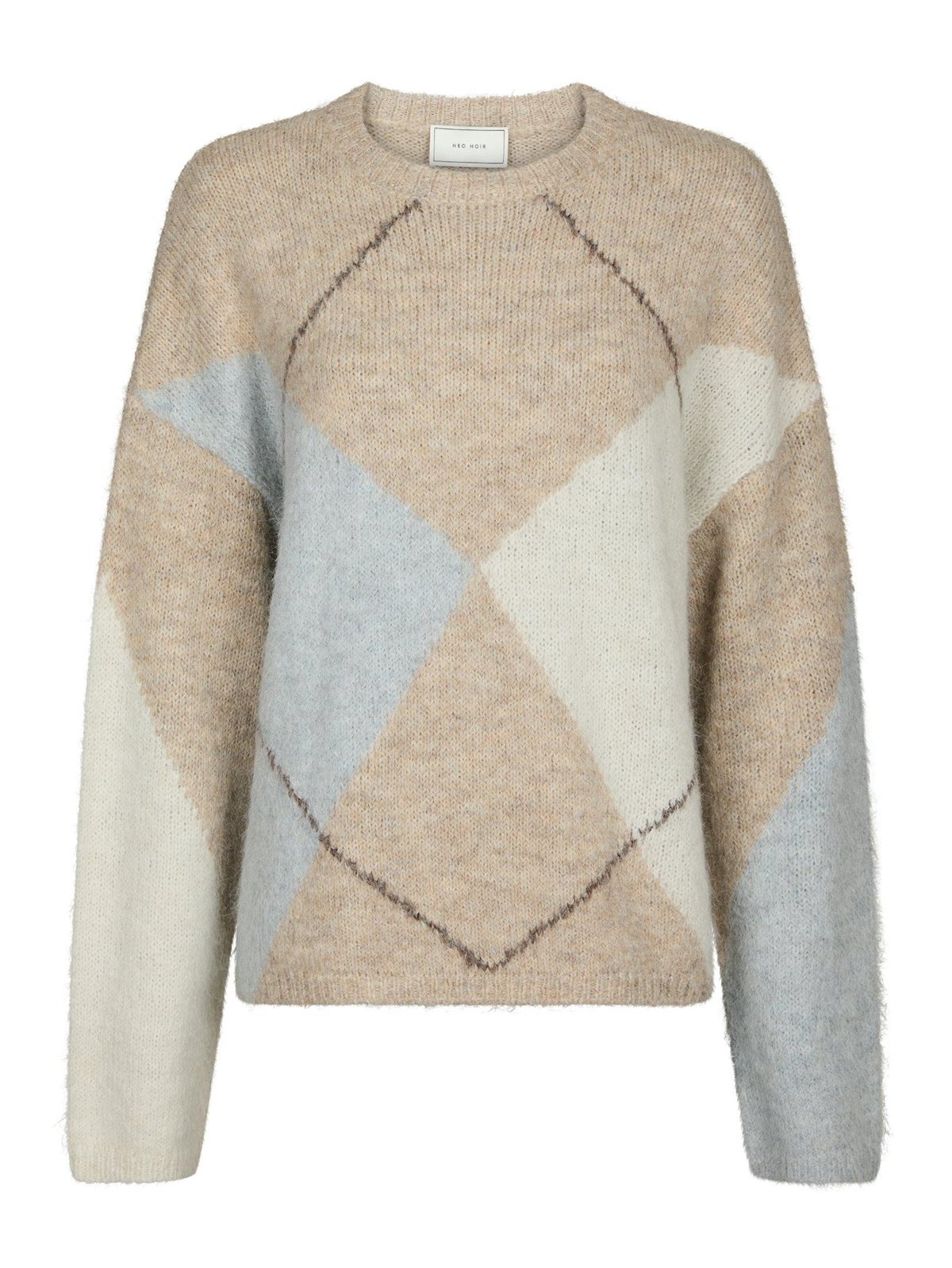 Neo Noir - Inga Check Fluff Knit Blouse - Beige Melange