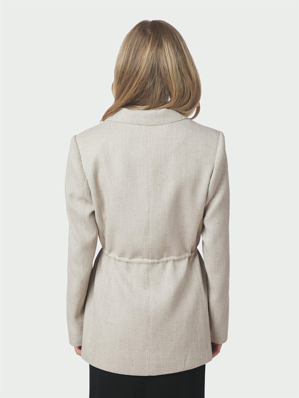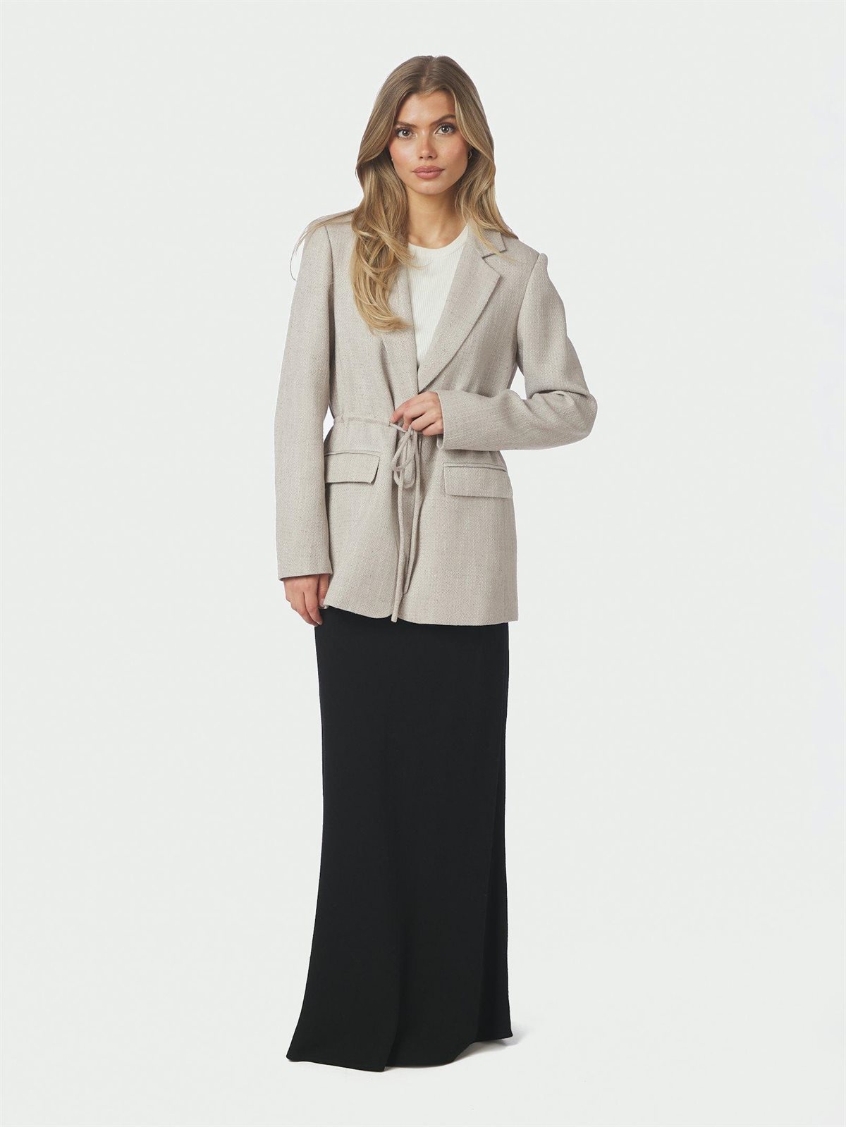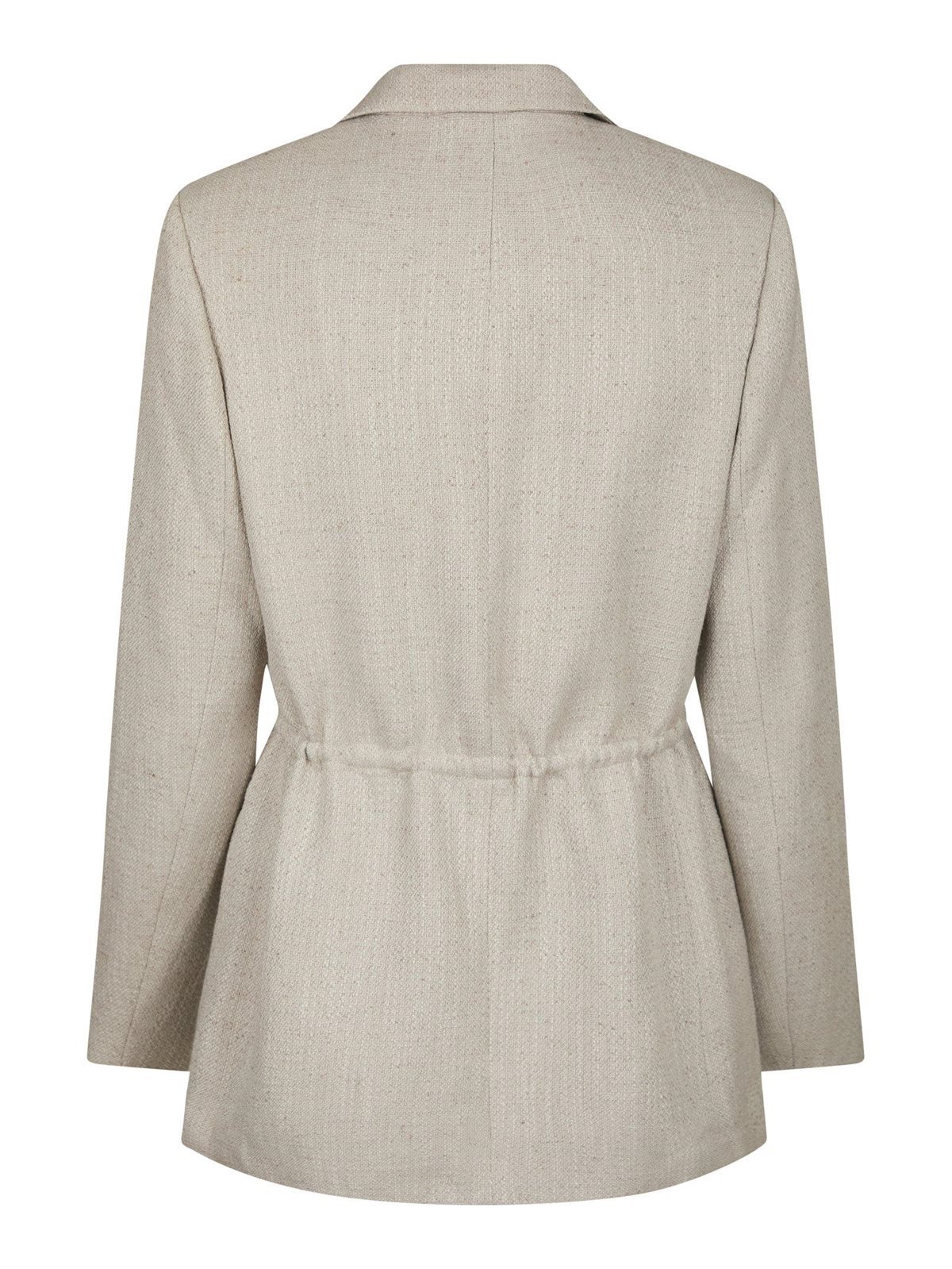 En virkelig lækker og smuk blazerjakke fra Neo Noir  i en flot vævet bouclékvalitet i beige. Jemmie Bouclé Blazer er en klassisk blazer med en cool detalje i form af bindebånd i taljen, som giver blazeren et mere afslappet look. Blazerjakken har desuden lommer fortil og knaplukning og er fuldforet. En virkelig fin og klassisk style med et feminint snit.