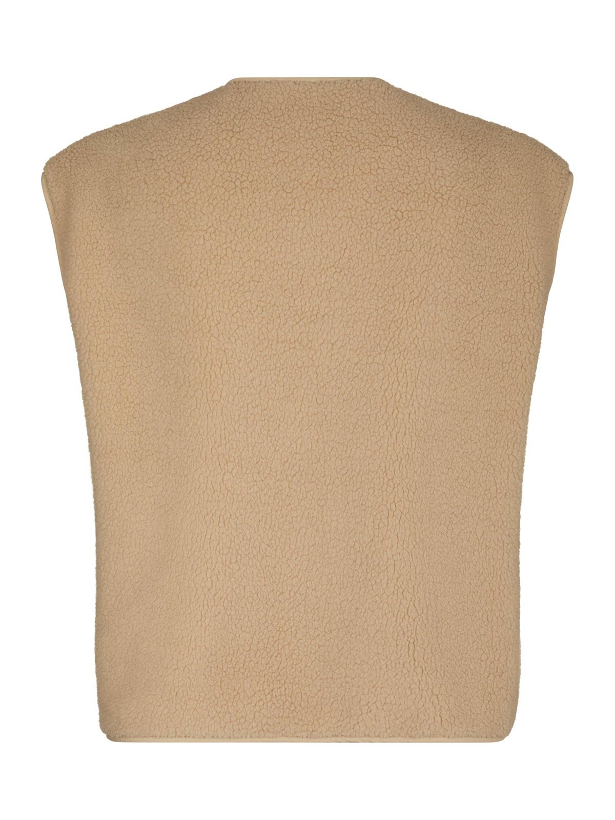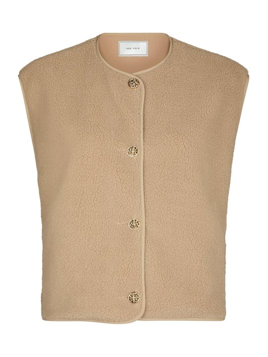 Så fin teddyvest fra Neo Noir i sandfarvet. Mariko Teddy Vest er med rund krave og er gennemknappet med de fineste "guld" knapper. Vesten har en bred løs pasform og har lommer i siderne (skal opsprættes). En virkelig lækker og anvendelig style, der er perfekt at style både til bukser og nederdele og udenover skjorter og t-shirts.