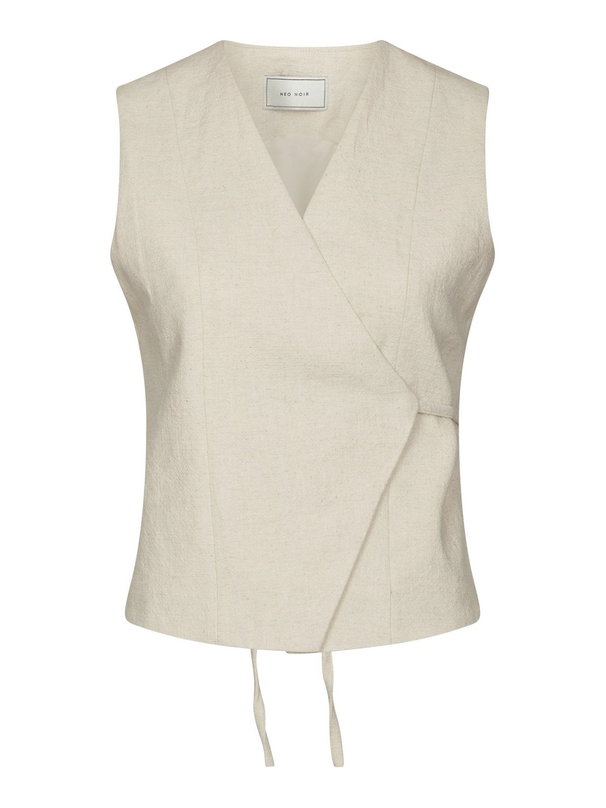 Smuk vest med wrapeffekt og bindebånd fra Neo Noir. Samara Ramie Waistcoat er en fitted tætsiddende vest, som bindes i den ene side med bånd. Vesten har V-udskæring fortil og er lavet af et dejligt ramie-stof, som er et stof der minder om hør, men som er blødere, mere holdbart og bæredygtigt lavet af naturfiber med en silkeagtig glans. Virkelig en fin vest, hvor der findes matchende Sega Ramie Shorts til.