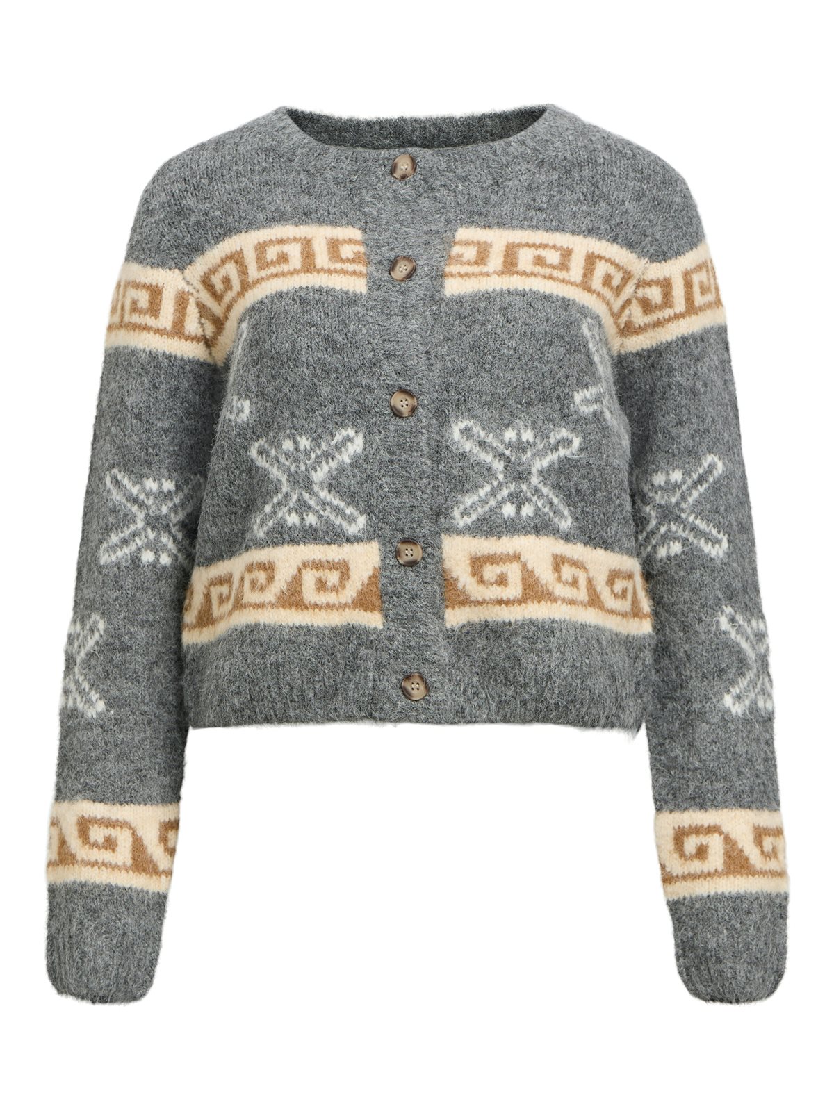 Object - Galia Ls Knit Cardigan - Medium Grey Melange