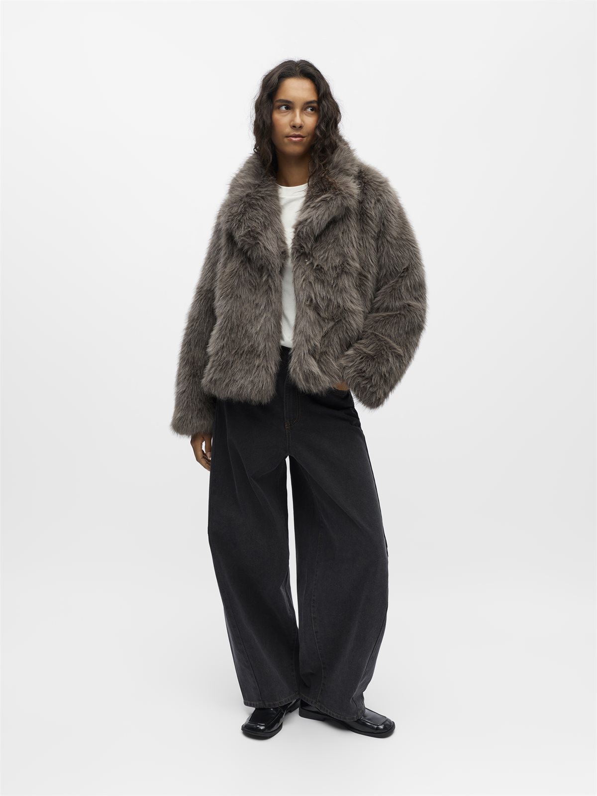 Den fineste fake fur jakke fra Object i grå. Isadora Ls Hairy Coat har krave, lange ærmer og lommer i siderne. Jakken har en løs pasform og kan lukkes med trykknapper i front. En virkelig cool og trendy style, der fuldender dit outfit.