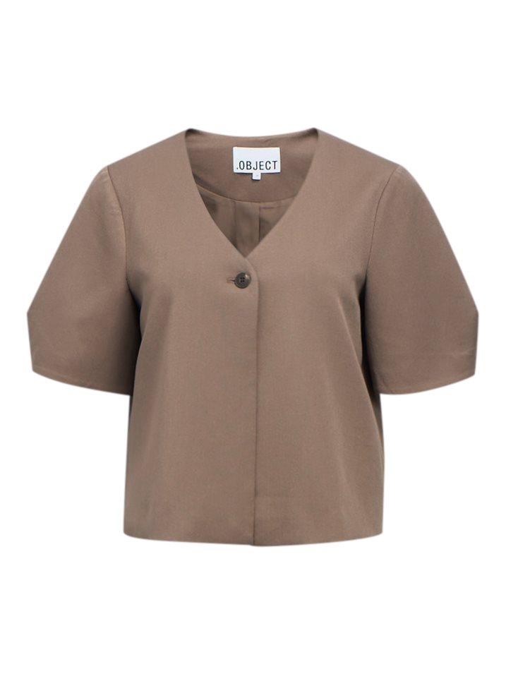 Den fineste lille kortærmede blazerbluse fra Object i habitkvalitet i farven Morel. Lisa SS Top er med korte løse ærmer og satininderfoer. Toppen lukkes med 1 enkelt knap fortil og er åbentstående forneden med en løs pasform og har en smuk v-udskæring. En virkelig sød og feminin style, der er perfekt både til hverdag og fest og har et tidløst look.